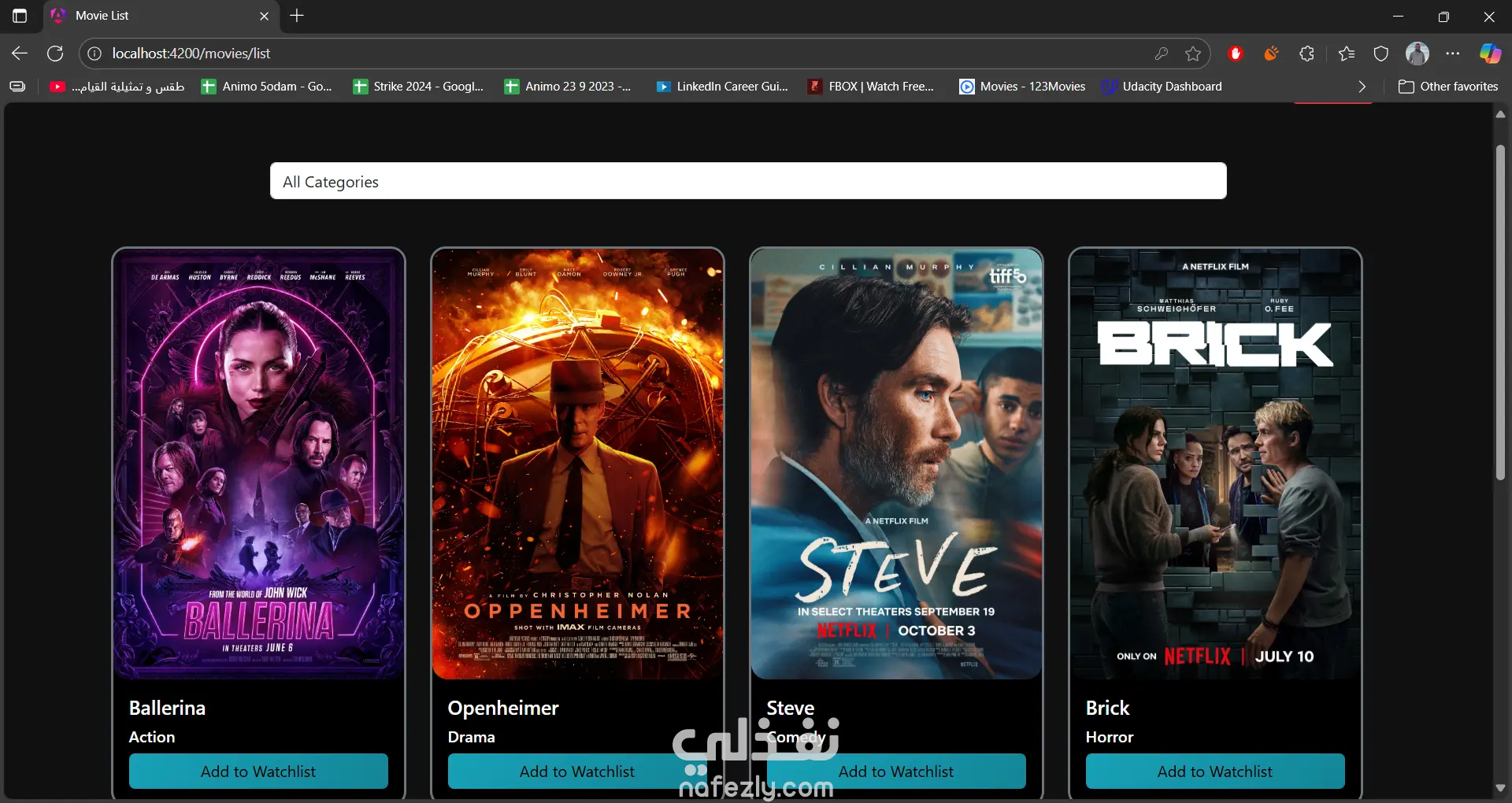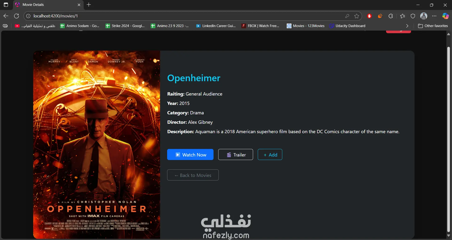 يهدف المشروع إلى تطوير تطبيق ويب تفاعلي باستخدام Angular يتيح للمستخدمين استعراض الأفلام حسب الفئة، عرض تفاصيلها، وإدارة قائمة المشاهدة الشخصية. يعتمد التطبيق على مفاهيم Angular الأساسية مثل التوجيه، الحراس، التحميل الكسول، النماذج التفاعلية، والأنابيب المخصصة، مع واجهة متجاوبة باستخدام Bootstrap. يتضمن التطبيق صفحات لتسجيل الدخول، قائمة الأفلام، تفاصيل الفيلم، إضافة فيلم جديد، وقائمة المشاهدة.