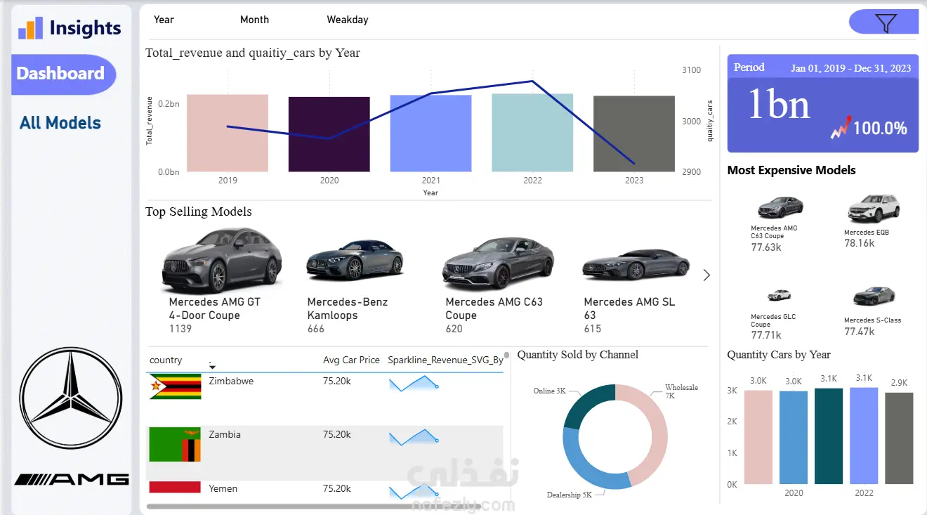 most important projects in the field of Business Intelligence: designing and developing an Interactive Dashboard for Mercedes using Power BI. 🔹 Project Goal: Transforming raw data into actionable insights that support decision-makers and highlight key trends with clarity and accuracy. 🔹 Key Deliverables: A fully interactive sales performance dashboard across regions. In-depth analysis of car models and categories. KPI tracking to measure performance and identify opportunities. 🔹 Technologies Used: ✅ Power BI (Data Modeling – DAX – Visualization) ✅ Data Cleaning & Transformation ✅ Interactive Dashboards 📊 Outcome: A practical project that demonstrates my ability to turn data into impactful visual solutions, empowering management with faster and smarter decision-making.