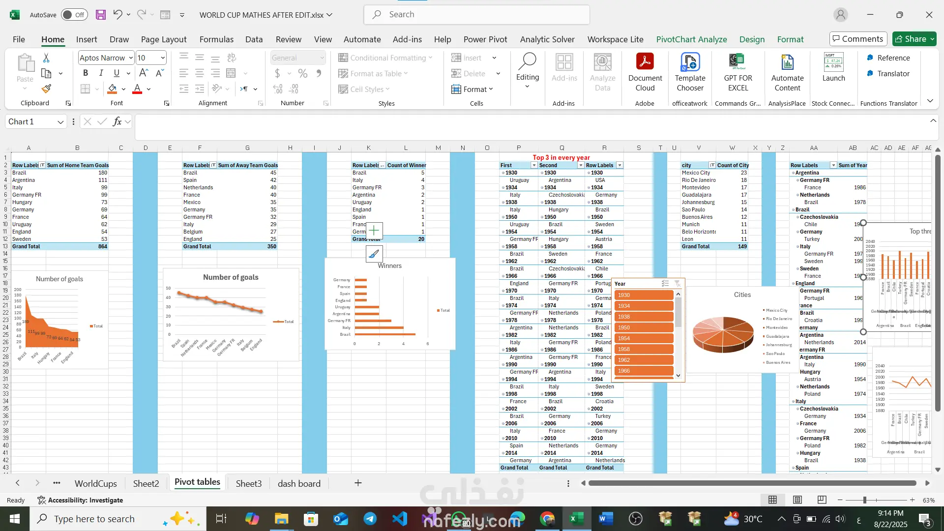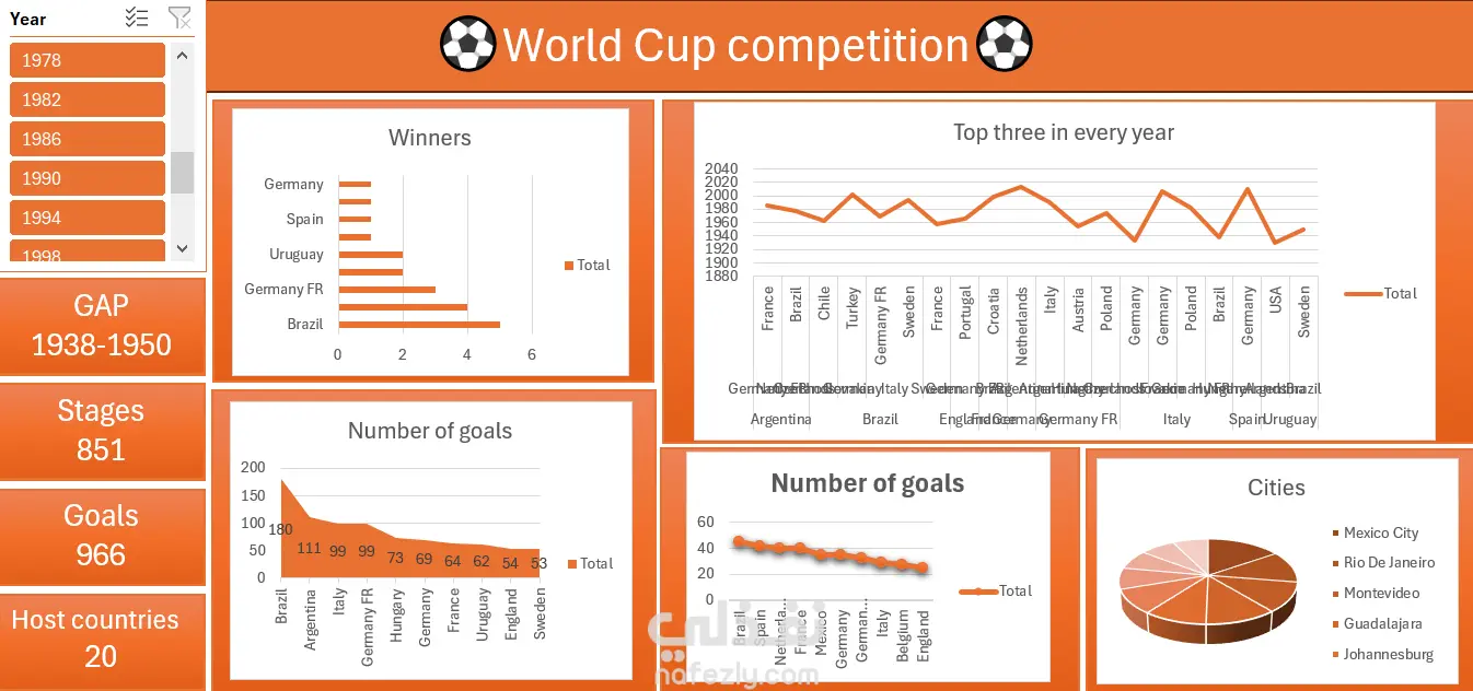 تحليل وتنظيف بيانات كأس العالم وعمل داشبورد باستخدام ميكروسوفت إكسل