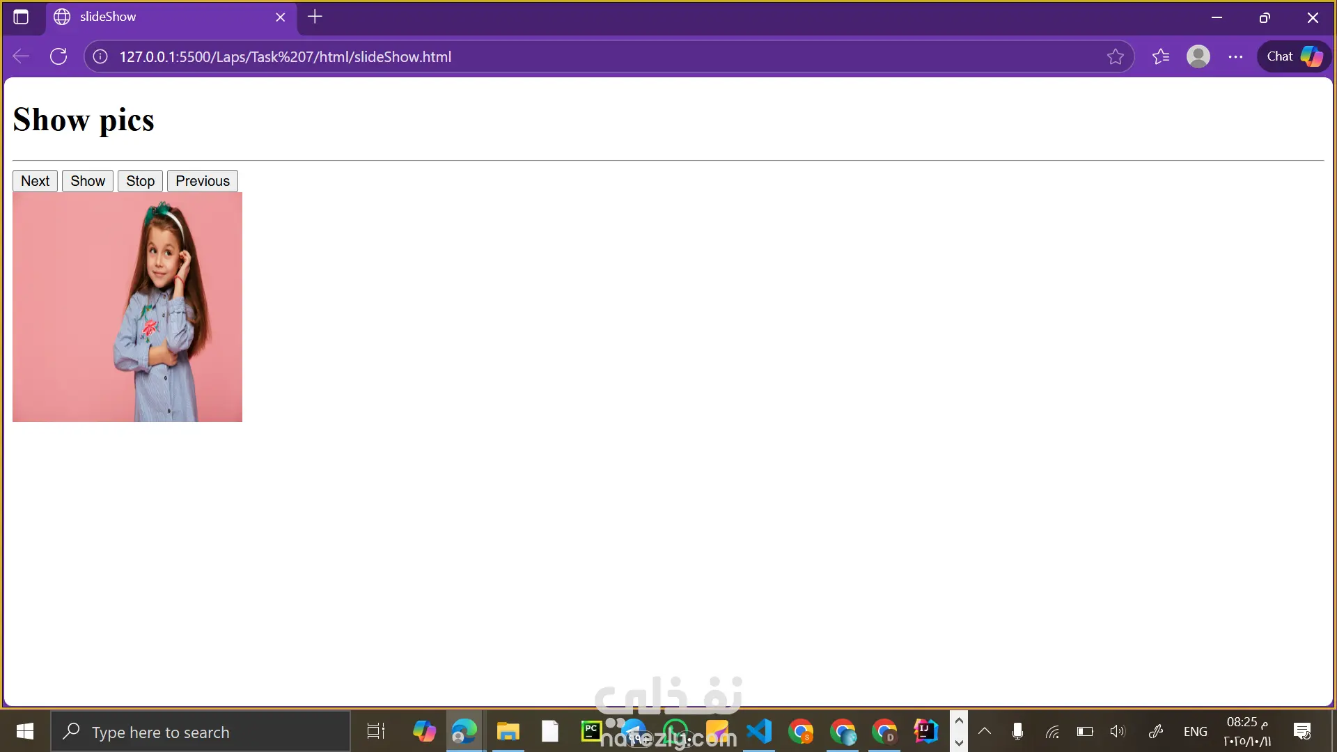 قمت بتطوير صفحة ويب بسيطة واحترافية لعرض الشرائح (Slideshow) باستخدام HTML وCSS وJavaScript فقط.