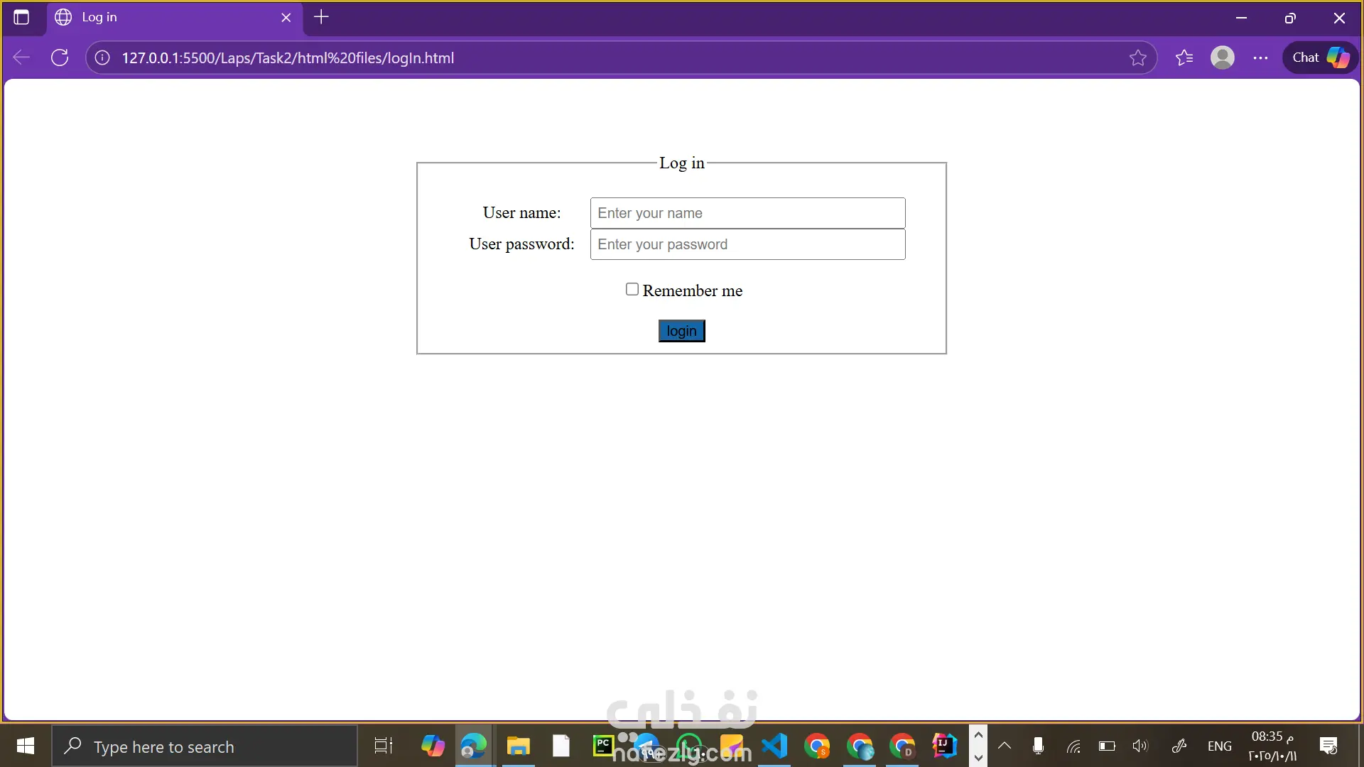 تتيح الصفحة للمستخدم إدخال اسم المستخدم وكلمة المرور، مع خيار تذكّر المستخدم (Remember me) لتسهيل عملية الدخول في المرات القادمة.