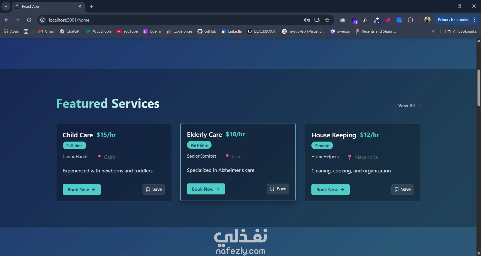 يقوم الموقع بعرض قائمة من الممرضين أو الممرضات القريبين من موقع المريض، مع إمكانية تصفح ملفاتهم الشخصية، قراءة التقييمات السابقة، ومقارنة الأسعار والخبرة قبل اختيار الأنسب.