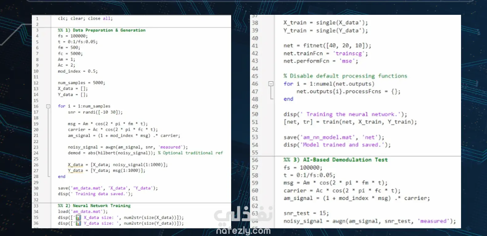 تصميم وتنفيذ تقنيات Analog Modulation & Demodulation في أنظمة الاتصالات باستخدام Artificial Intelligence (AI)