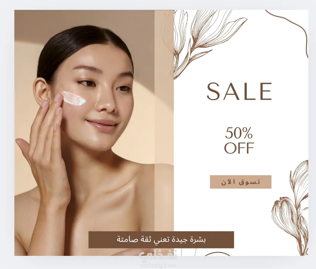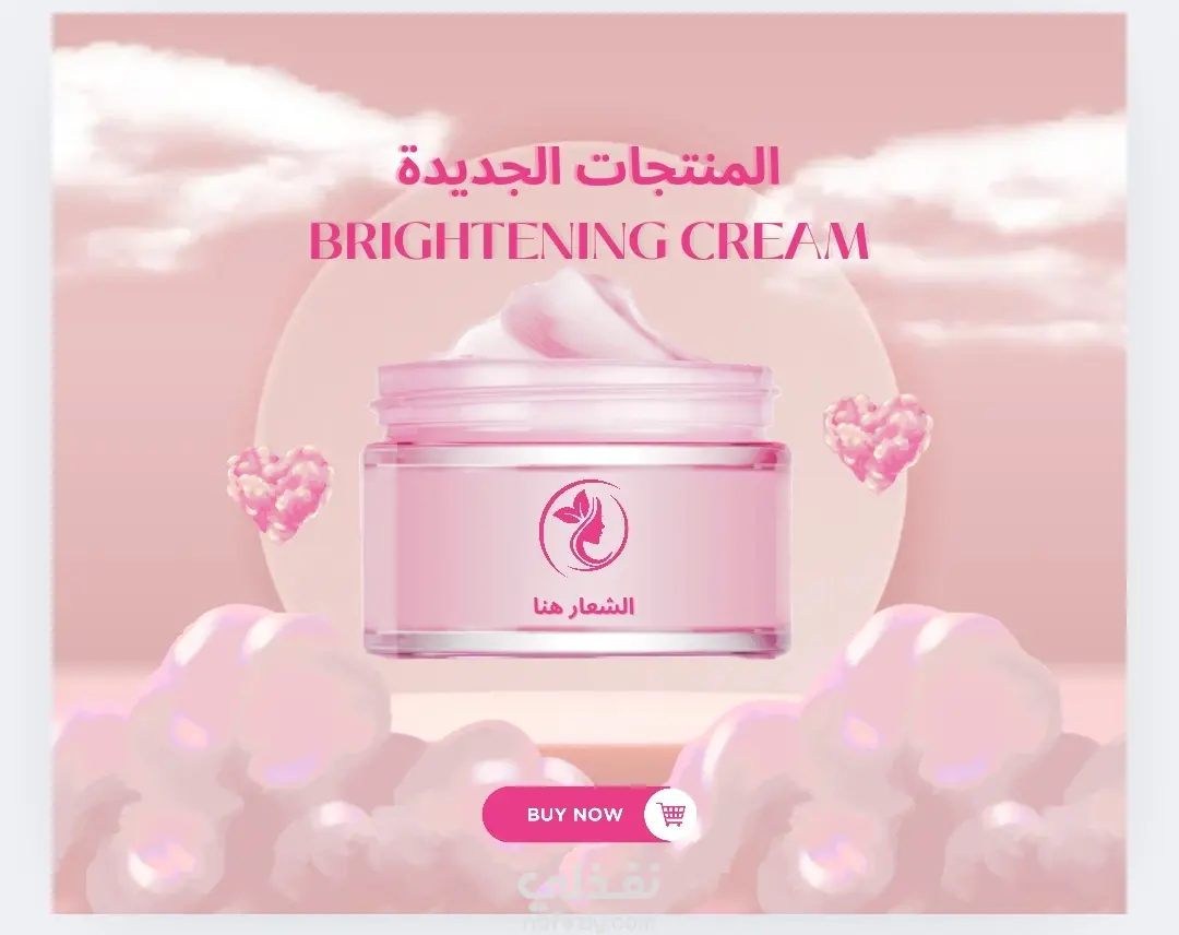 تصميم منشور دعائي مخصص للترويج لكريم تفتيح البشرة الجديد من علامة "Pure Glow"، يهدف إلى إبراز نعومة وتفتيح البشرة بشكل طبيعي وآمن.