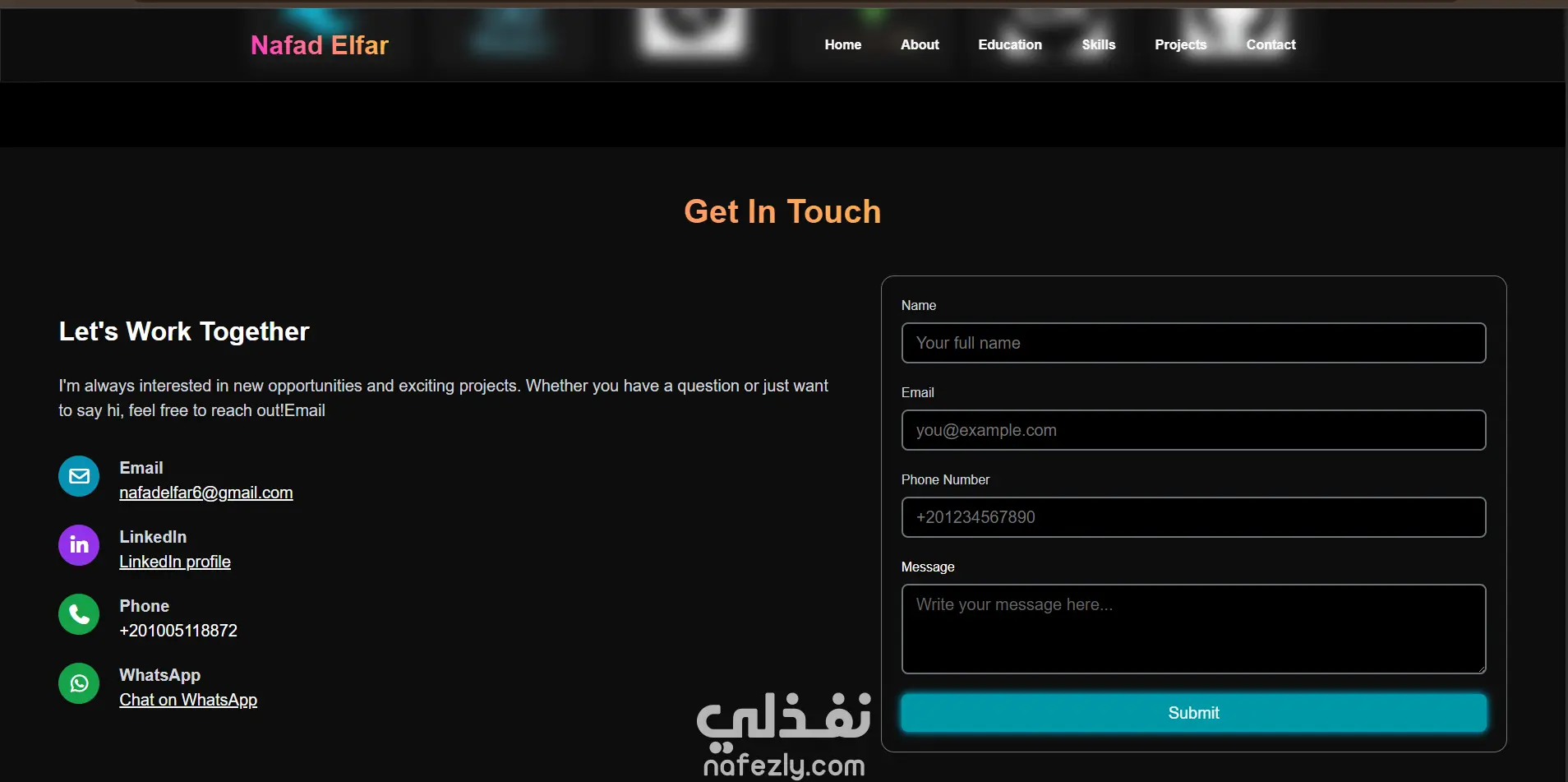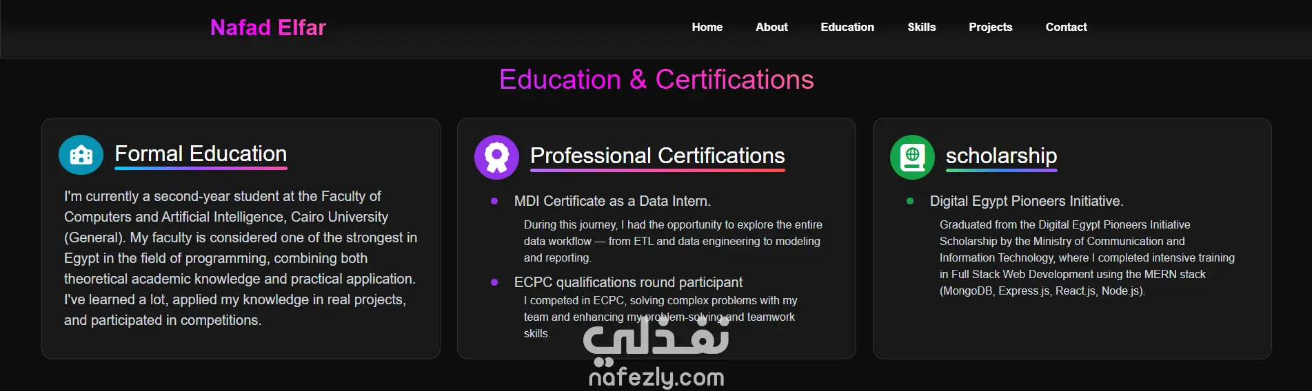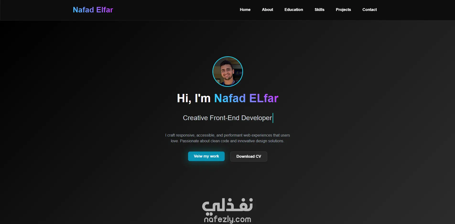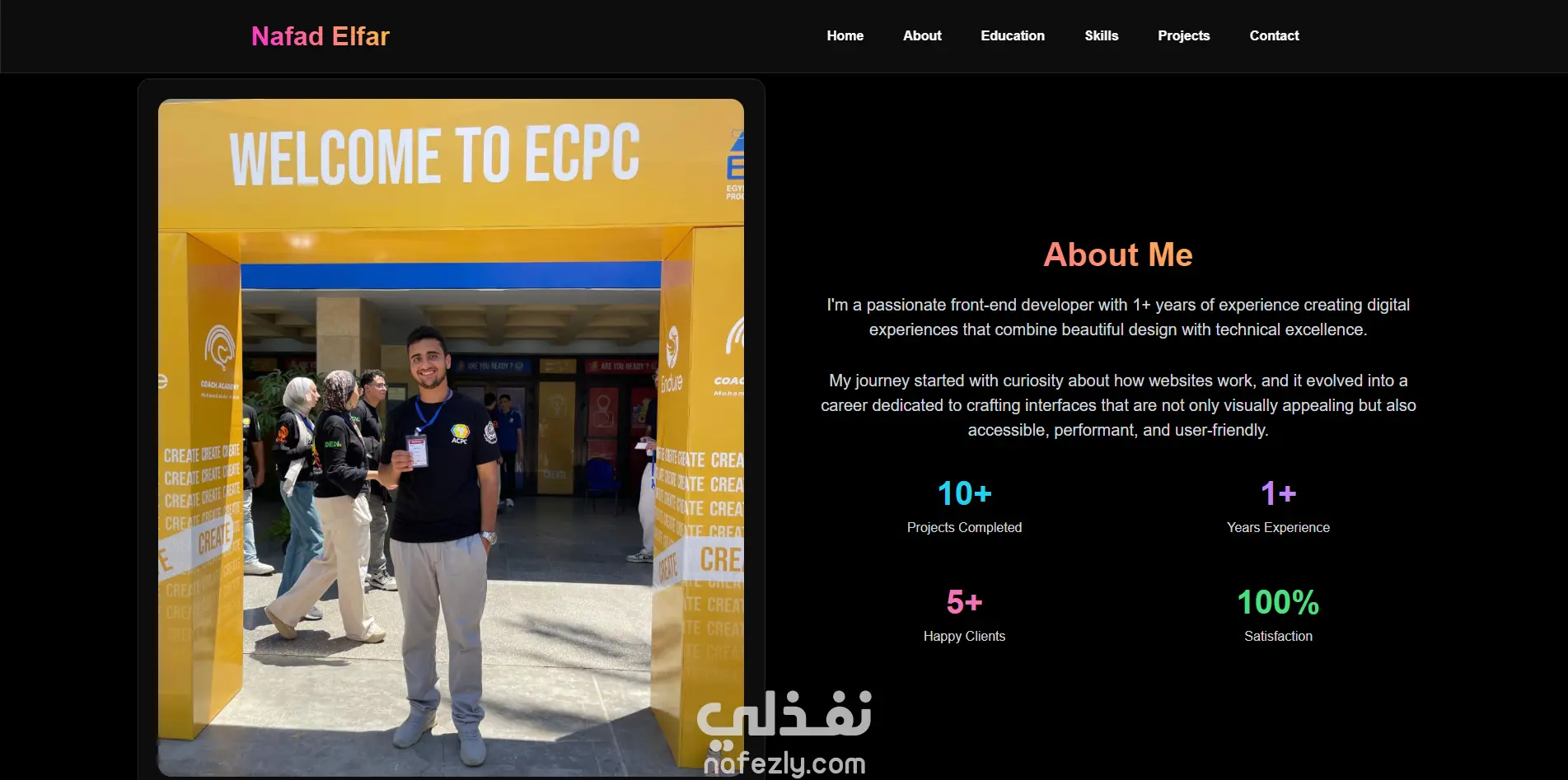 قمت بانشاء موقع يعرض مهاراتي في مجال الفروند اند باستخدام html css js