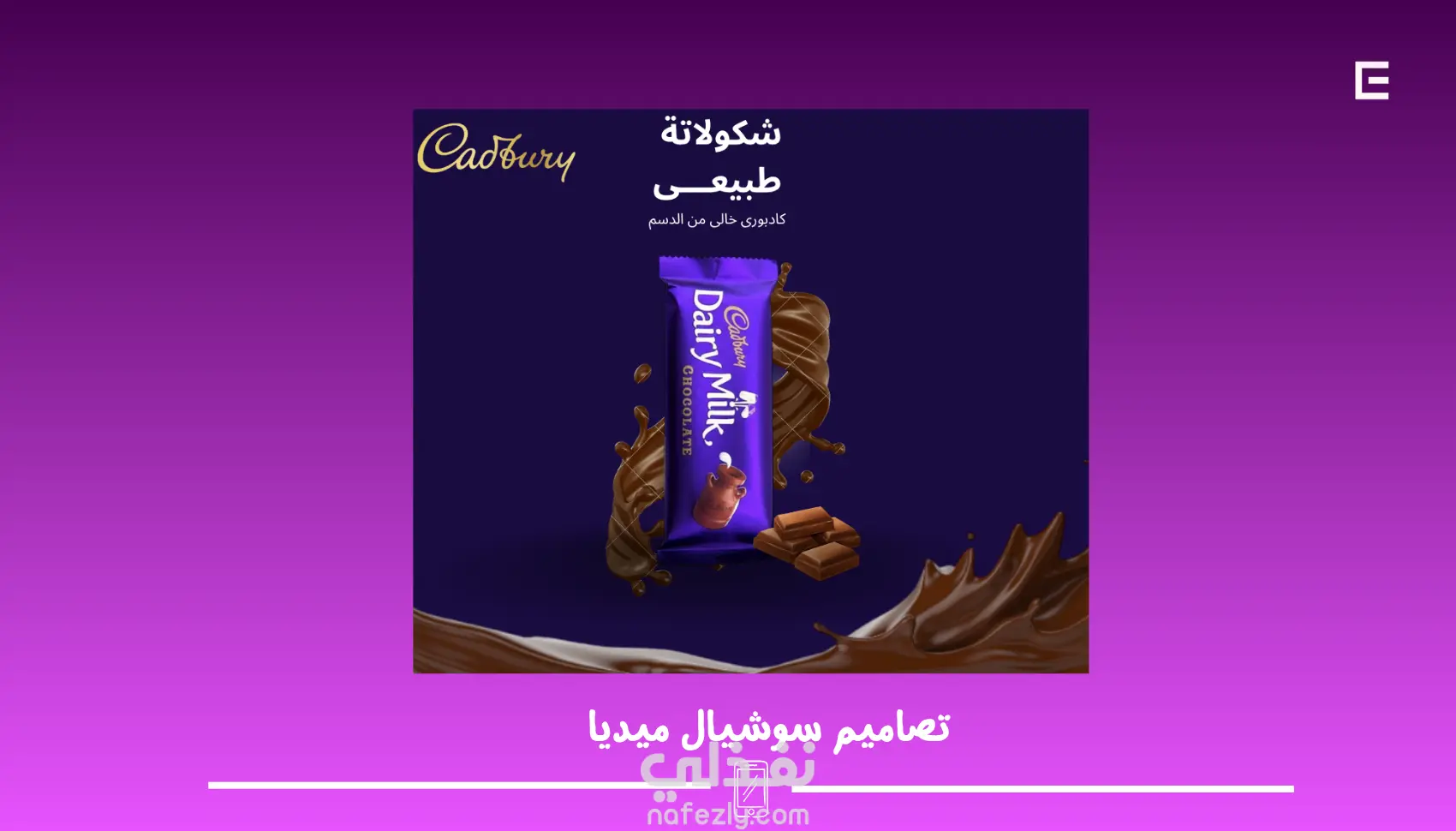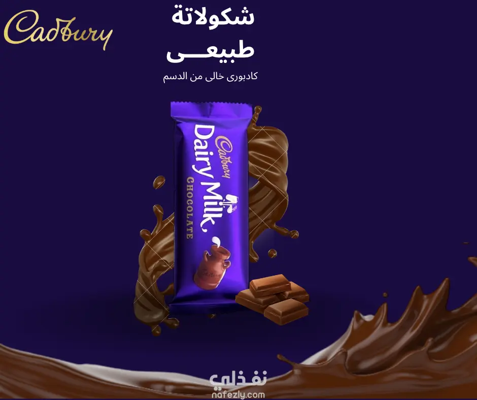 تصميم بسيط بلون غامق يركز على شكل الشوكولاتة وإحساس الطعم.