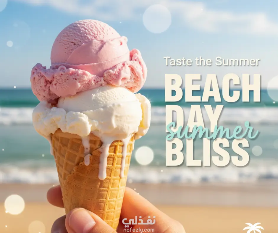 تصميم بألوان فاتحة خفيفة توصل إحساس بالصيف والانتعاش. ركزت على الإضاءة الطبيعية وخلفية البحر عشان تدي جو مبهج ومناسب لفصل الصيف.