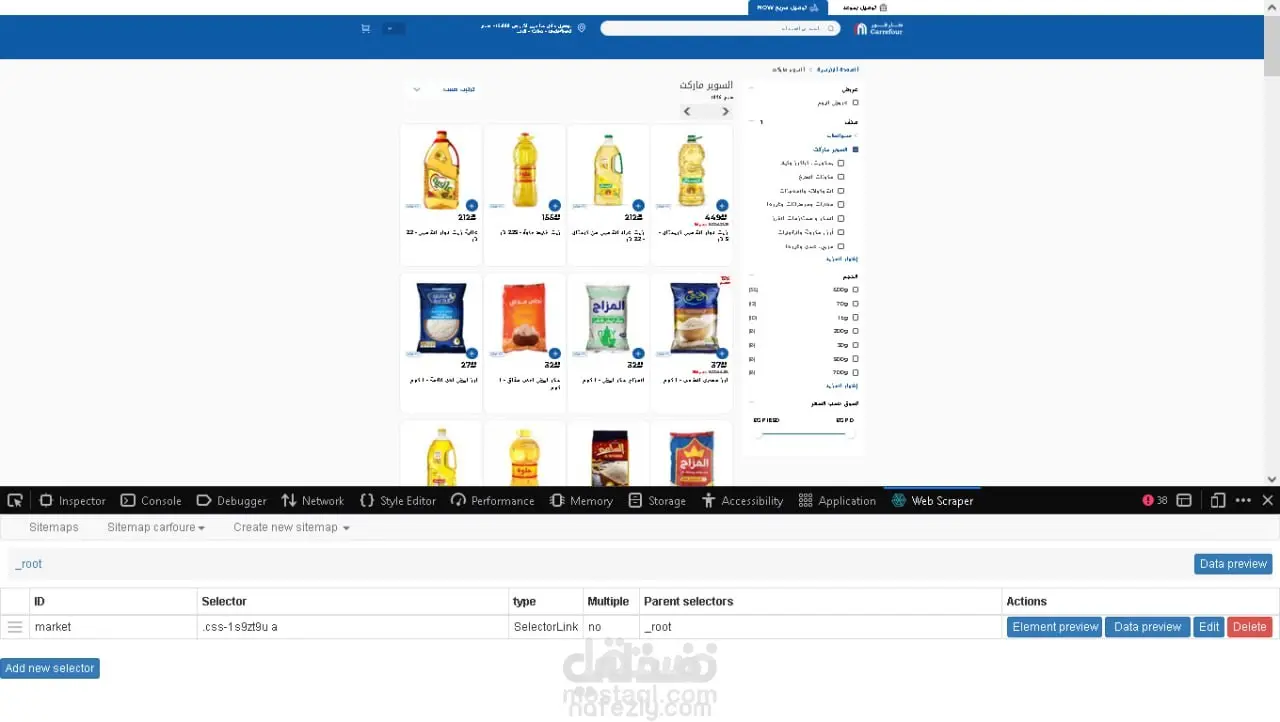استخراج بيانات منتجات معينه من كارفور وتحليل نسبة المبيعات لكل قسم Carrefour Web Scraping