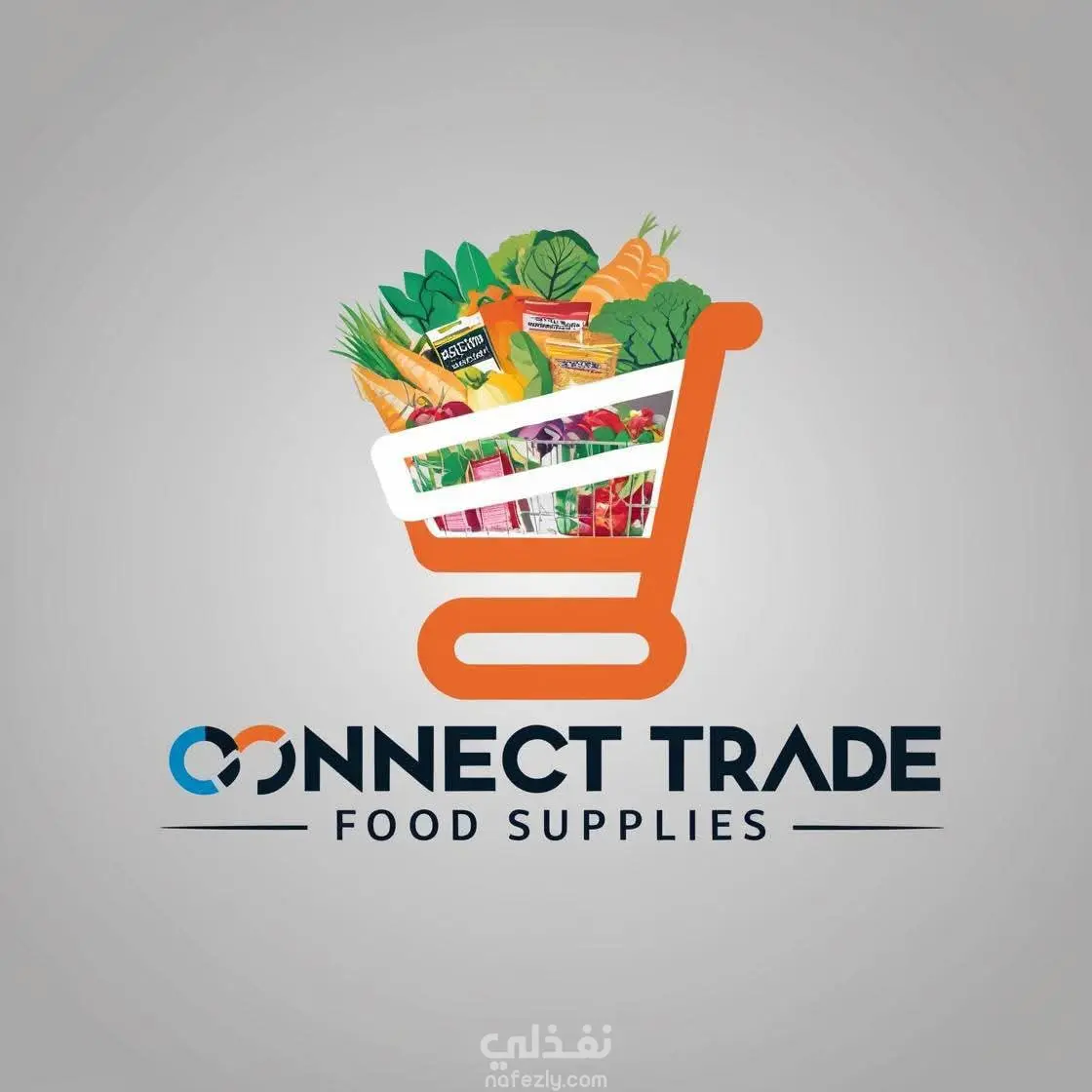 شعار Connect Trade Food Supplies يجمع بين رمزية التجارة والغذاء. يمثل عربة التسوق النشاط التجاري وتنوع المنتجات الطازجة داخلها. الألوان الزرقاء والبرتقالية تعبر عن الثقة والحيوية في العمل. يعكس الشعار هوية شركة متخصصة في توريد الأغذية بجودة واحترافية.