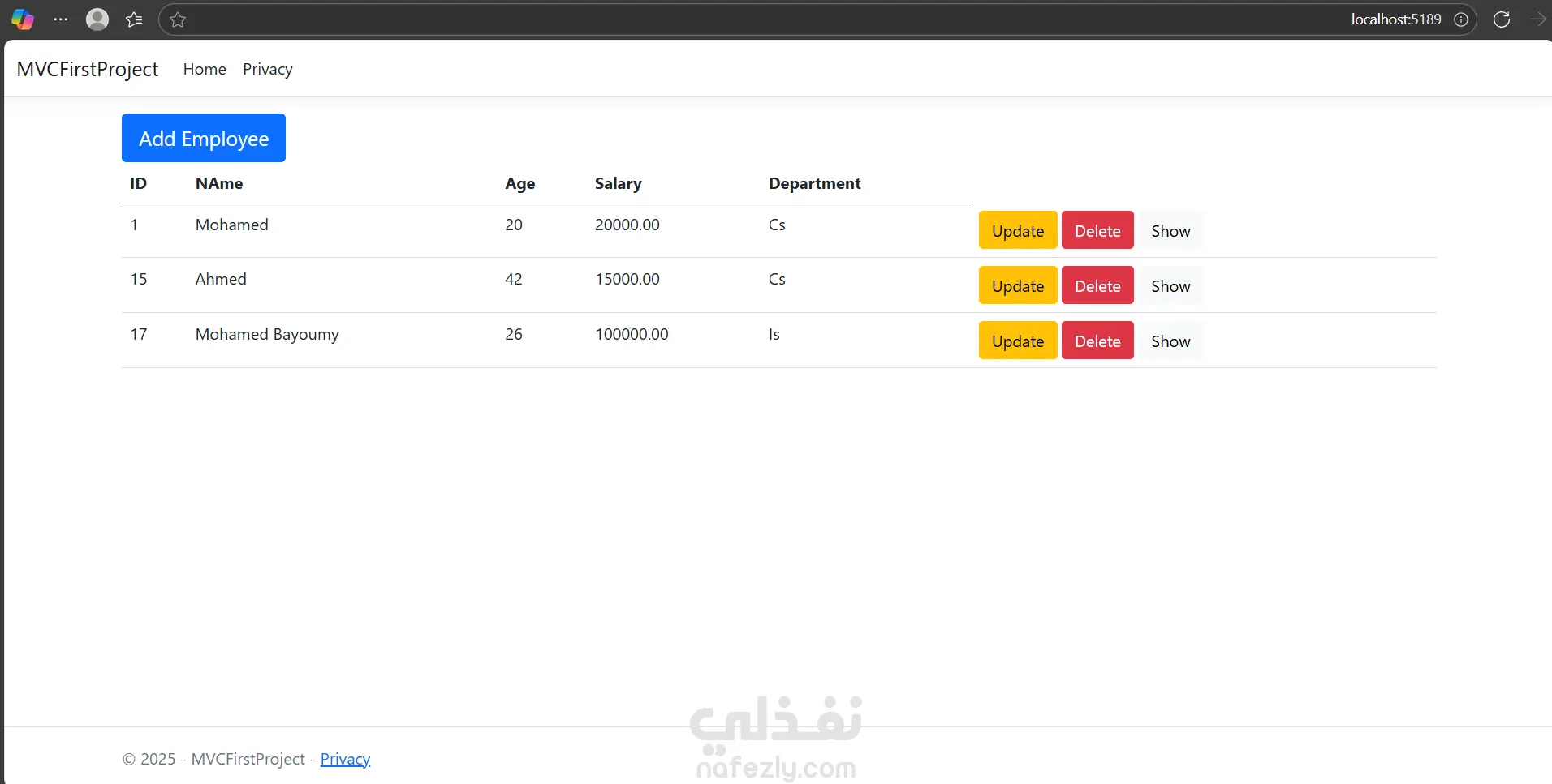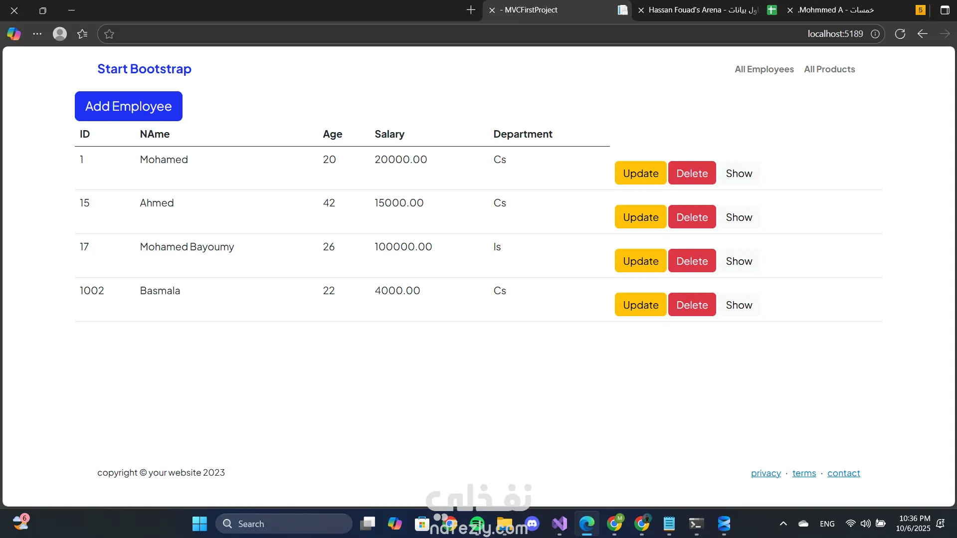 شركه صغيره يمكنها اضافه وتعديل ومسح الموظفين والاقسام والمنتجات