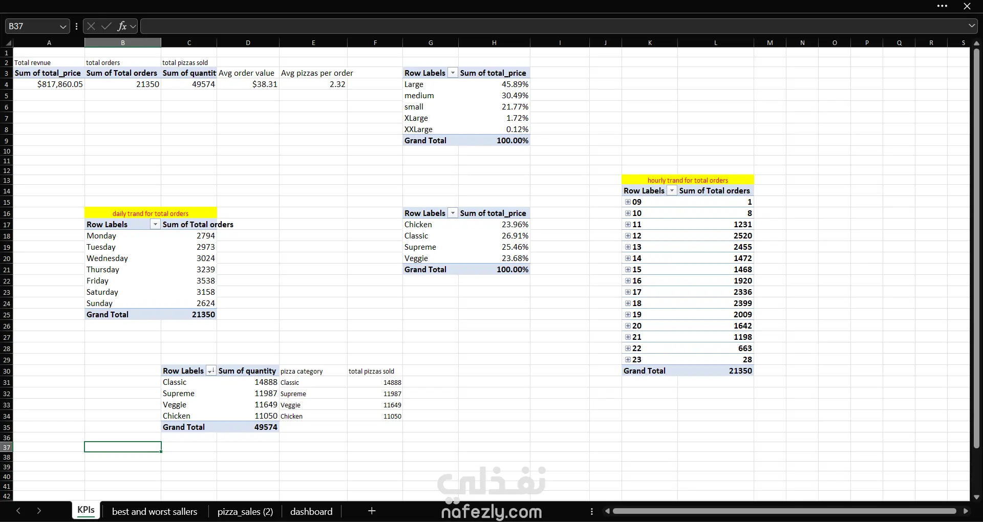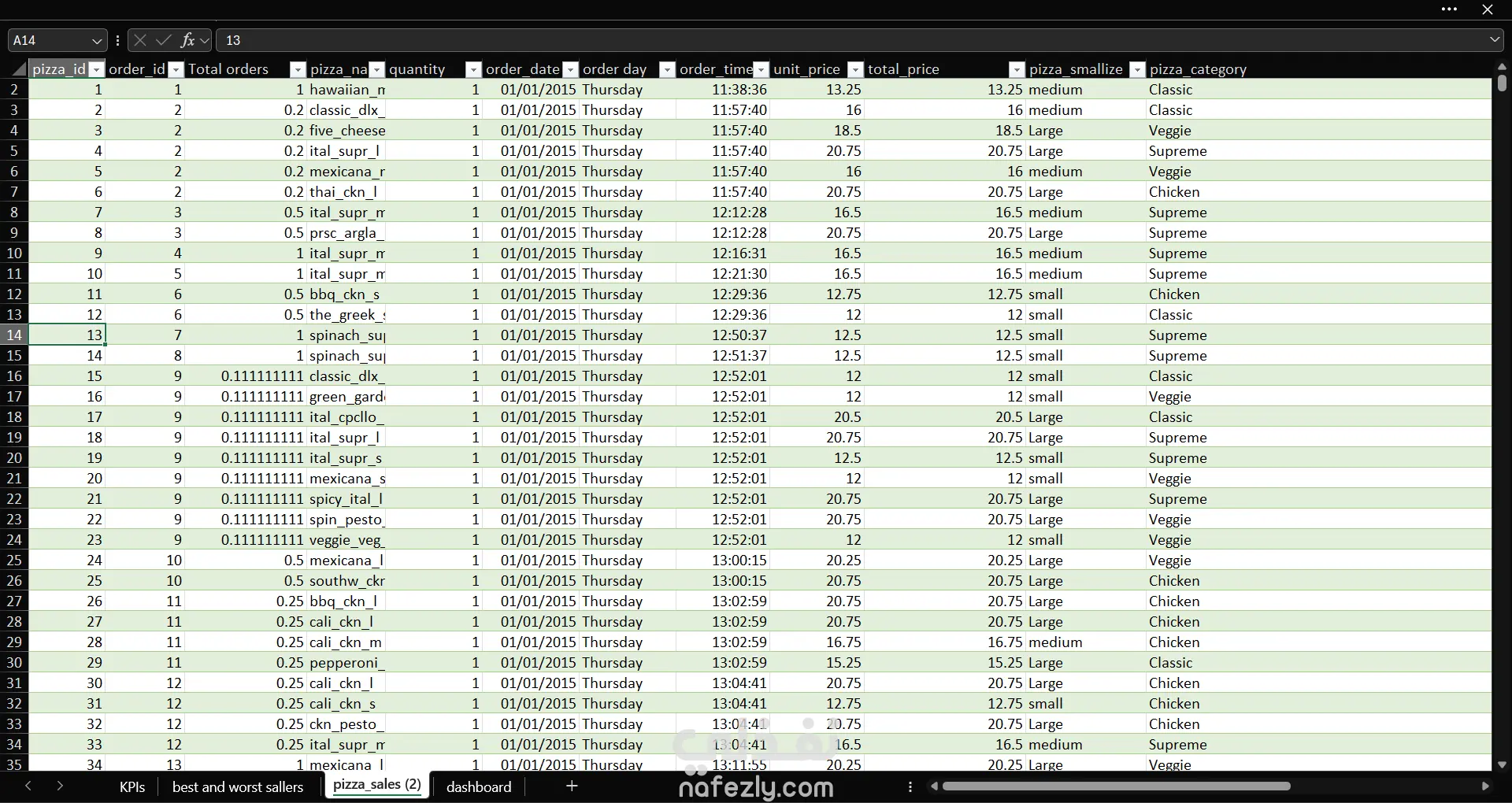 تحليل بيانات مطعم بيتزا باستخدام اكسيل