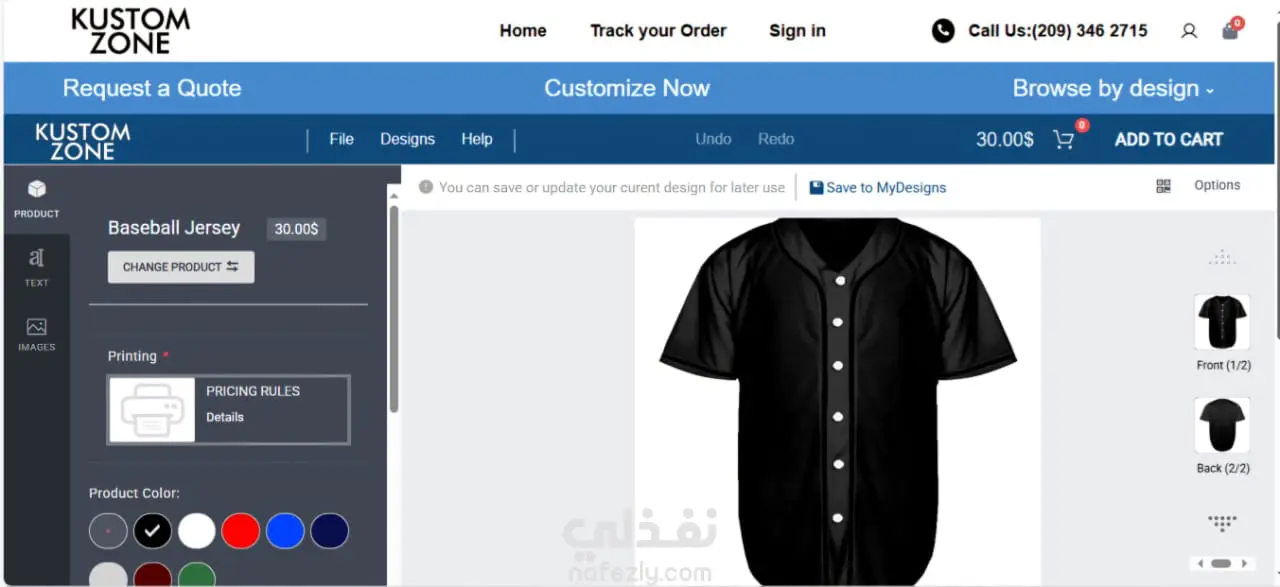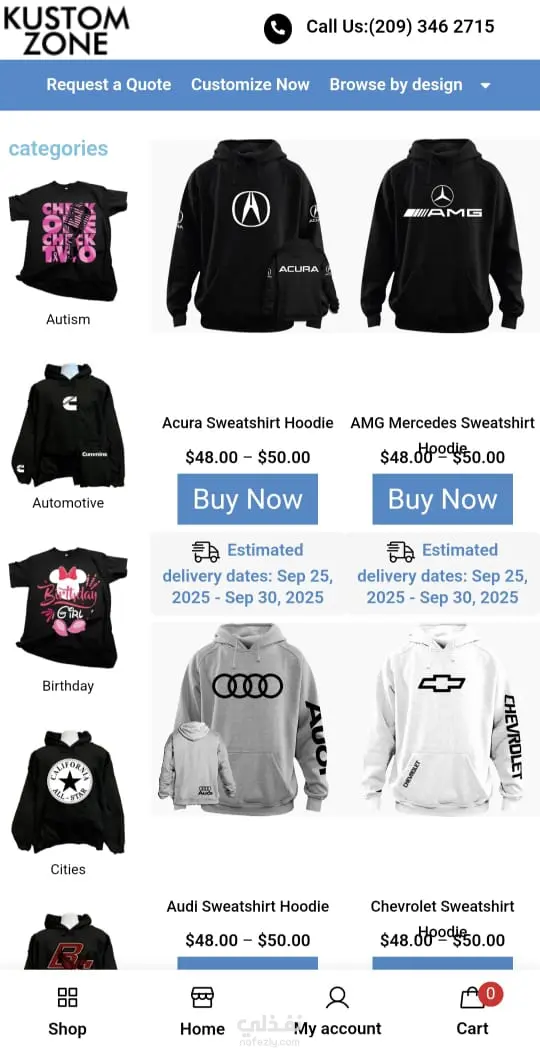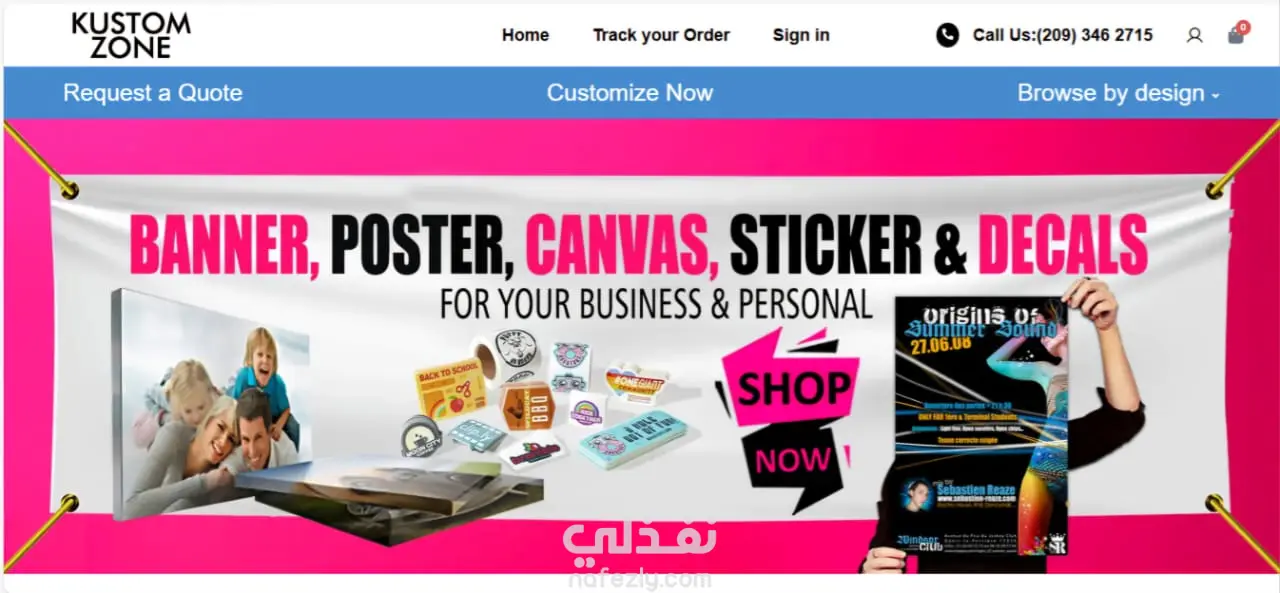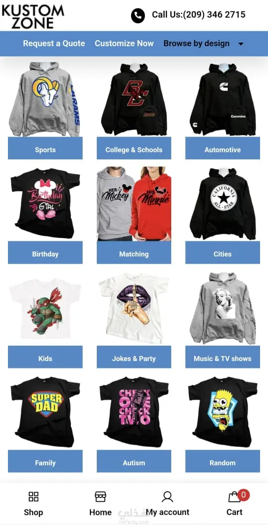 Kustom-Zone – متجر تعديل وتخصيص منتجات (تيشيرت، قبعات، بلايز، حقائب وغيرها) باستخدام WooCommerce، WordPress، HTML، CSS، JavaScript