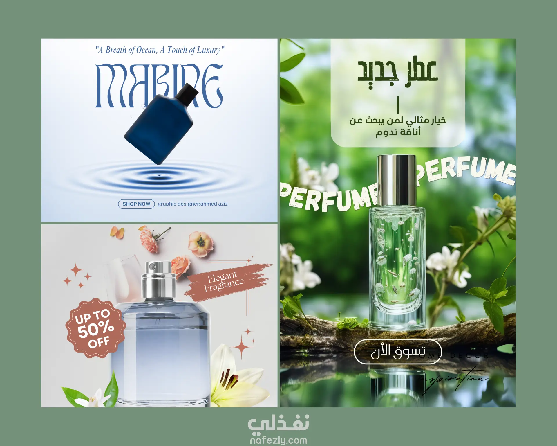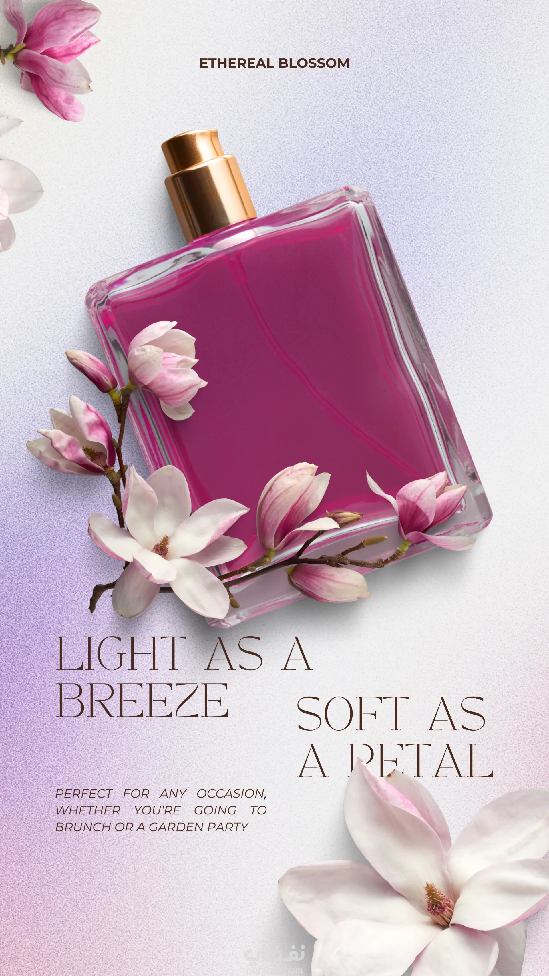 تصميمي يجسّد عالم العطور الفاخر بأسلوب بصري أنيق يعكس روح الفخامة والجاذبية.