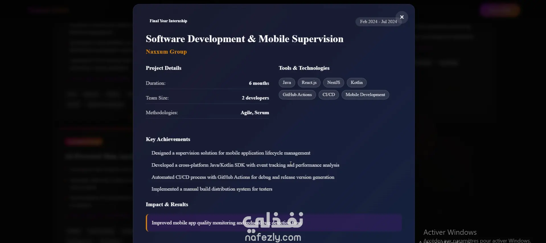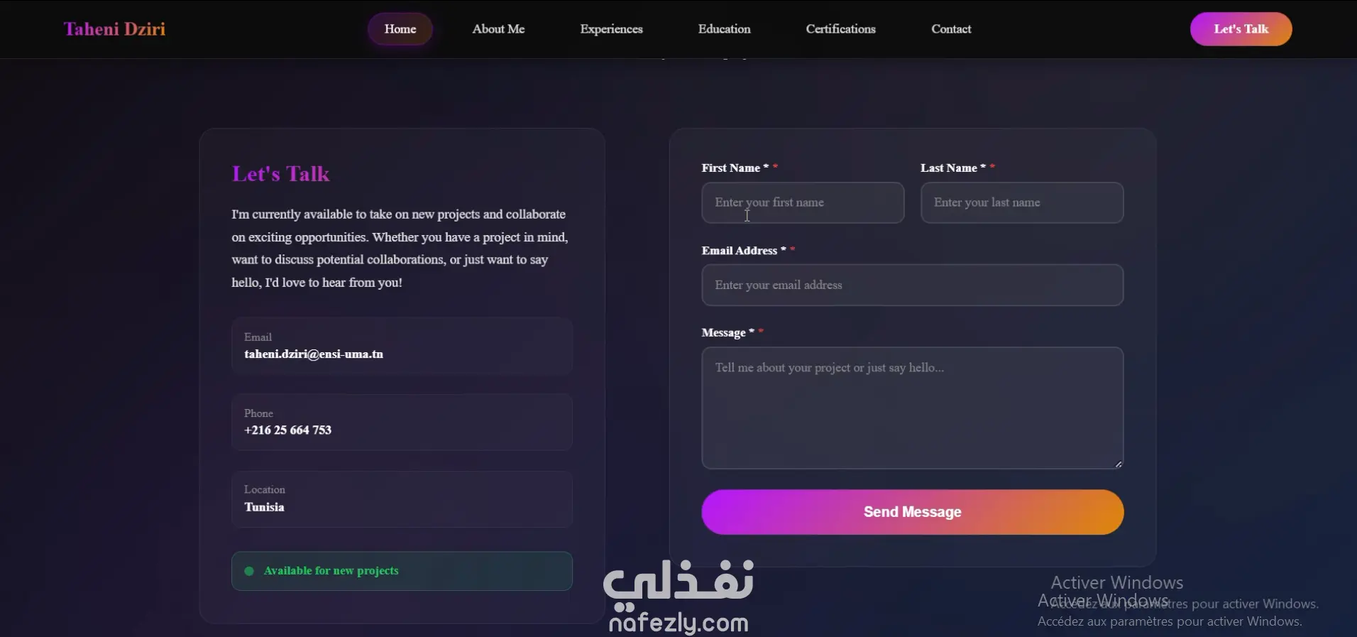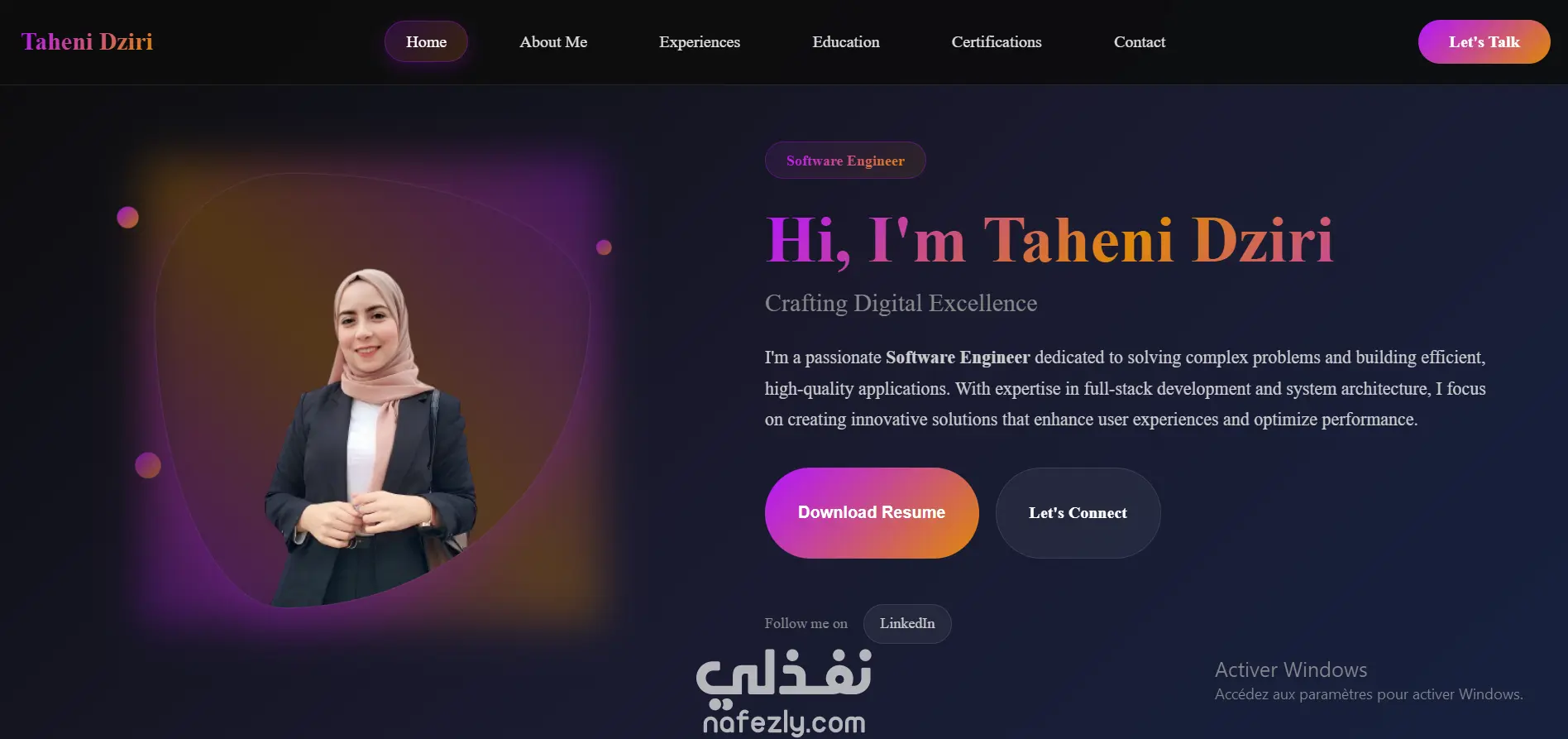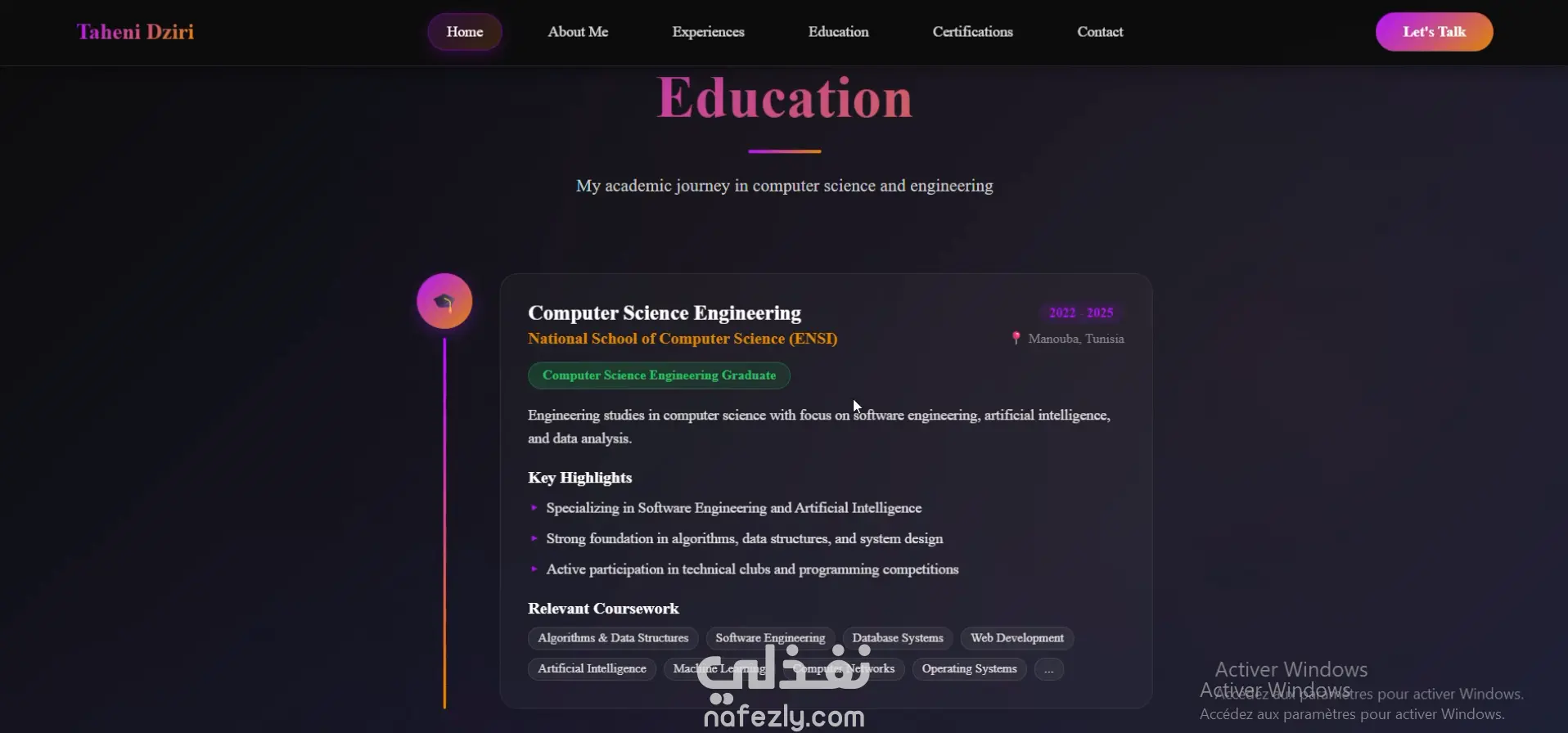 قمتُ بتطوير موقع إلكتروني شخصي يعرض مسيرتي المهنية ومشاريعي في مجال هندسة البرمجيات.