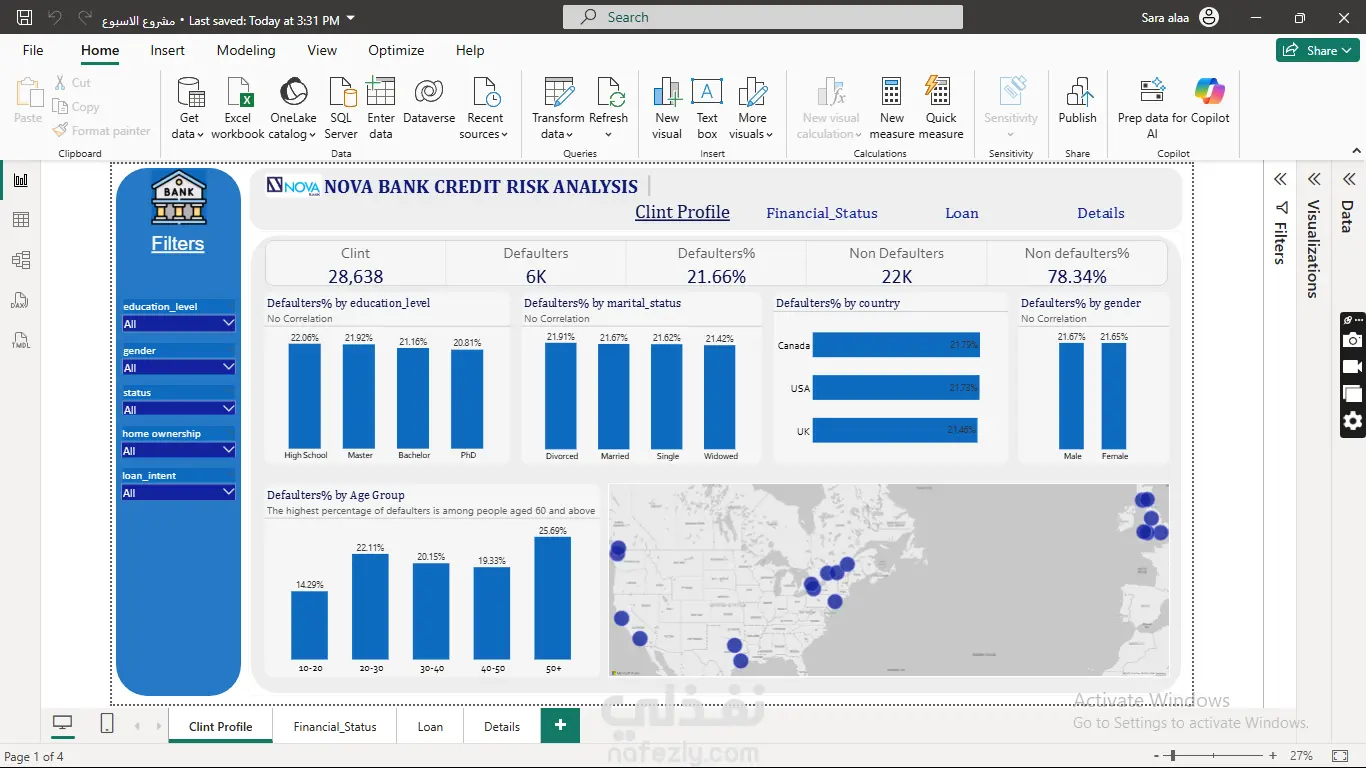 قمتُ بتطوير لوحة مؤشرات تفاعلية خاصة بنظام تذاكر تكنولوجيا المعلومات باستخدام Power BI لمتابعة وتحليل أداء الدعم الفني. توفر اللوحة رؤى تحليلية حول: إجمالي التذاكر (40K+) ومتابعة الاتجاهات الشهرية عبر الزمن. تقسيم التذاكر حسب المعدل، الحل من الاتصال الأول (FCR)، شدة المشكلة، القناة، ونوع التذكرة. عرض توزيع التذاكر (طلبات، مشكلات، بوابة، بريد إلكتروني، وغيرها). متابعة فئات النظام مثل الأجهزة، البرمجيات، تسجيل الدخول، والنظام ككل. مؤشرات أداء رئيسية تشمل متوسط مدة الحل، معدل الحل من الاتصال الأول (FCR)، ومعدل الحل العام. الأثر: تعزيز وضوح أداء خدمات تكنولوجيا المعلومات من خلال دمج عدة مؤشرات أداء رئيسية في لوحة واحدة. مساعدة متخذي القرار على تحديد المشكلات بسرعة وتحسين تخصيص الموارد. دعم اتخاذ القرارات اعتمادًا على رؤى لحظية قائمة على البيانات. الأدوات المستخدمة: Power BI، DAX، النمذجة البيانية، التصور البياني