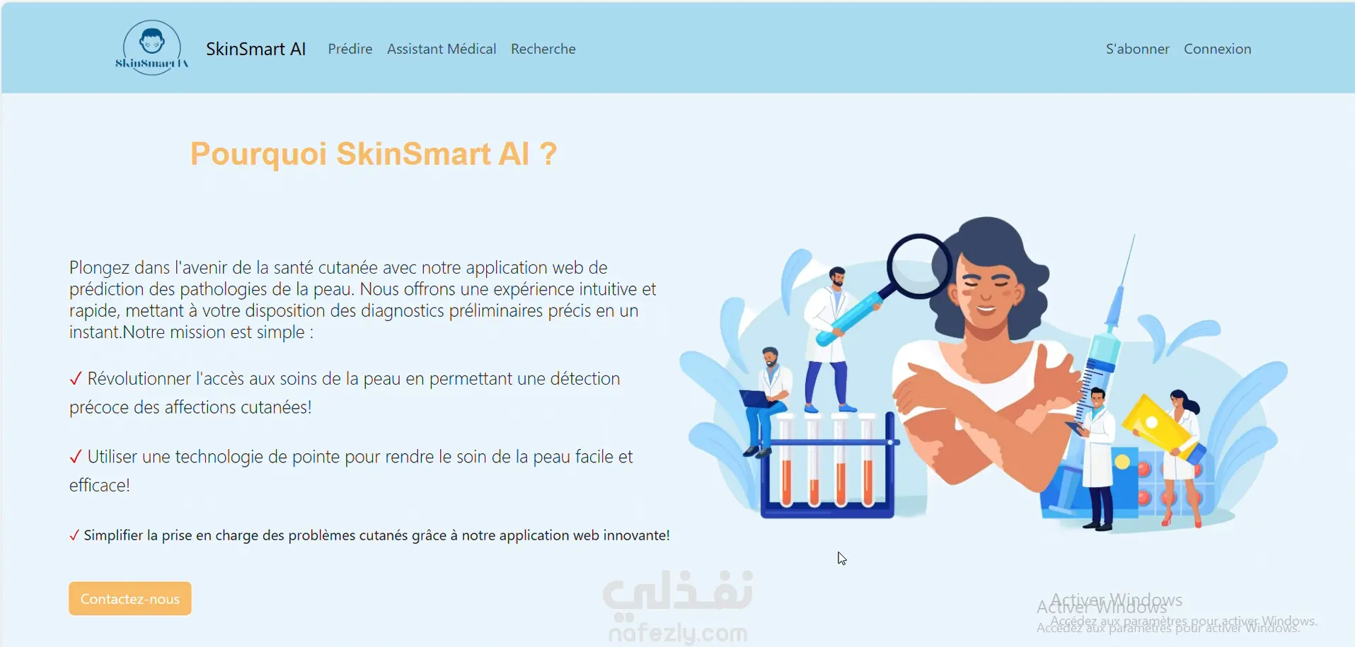 قمتُ بتصميم وتطوير منصّة ذكية تعتمد على الذكاء الاصطناعي والتعلّم العميق لتحليل صور البشرة والتعرّف على المشاكل الجلدية مثل حبّ الشباب، التصبّغات، والاحمرار بدقّة عالية. تتميّز المنصّة بقدرتها على توقّع الحالات الجلدية المحتملة وتقديم تقرير شامل يحتوي على تشخيص مبدئي وتوصيات مخصّصة للعناية بالبشرة. كما تتضمّن المنصّة مساعدًا ذكيًا (Chatbot) يُتيح للمستخدم طرح الأسئلة حول مشاكله الجلدية والحصول على إجابات فورية، إضافةً إلى قسم مقالات طبية موثوقة لزيادة الوعي بالعناية بالبشرة. وتوفّر المنصّة أيضًا ميزة تحديد الأطباء القريبين من موقع المستخدم لسهولة التواصل والحجز. يجمع هذا المشروع بين التقنيات الحديثة في Computer Vision وDeep Learning والابتكار في مجال الصحة الرقمية لتقديم تجربة تفاعلية متكاملة تخدم المستخدمين بكفاءة وذكاء.
