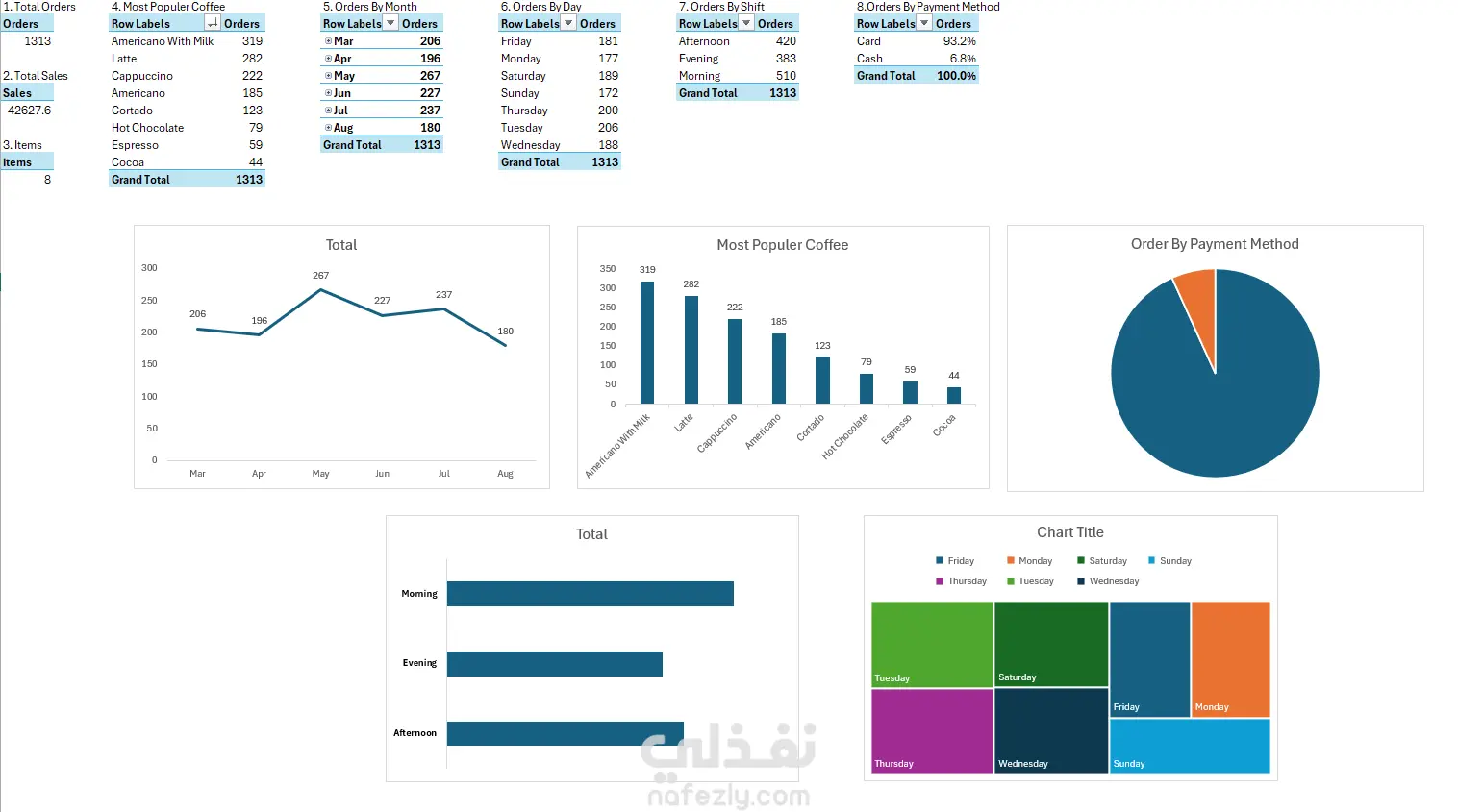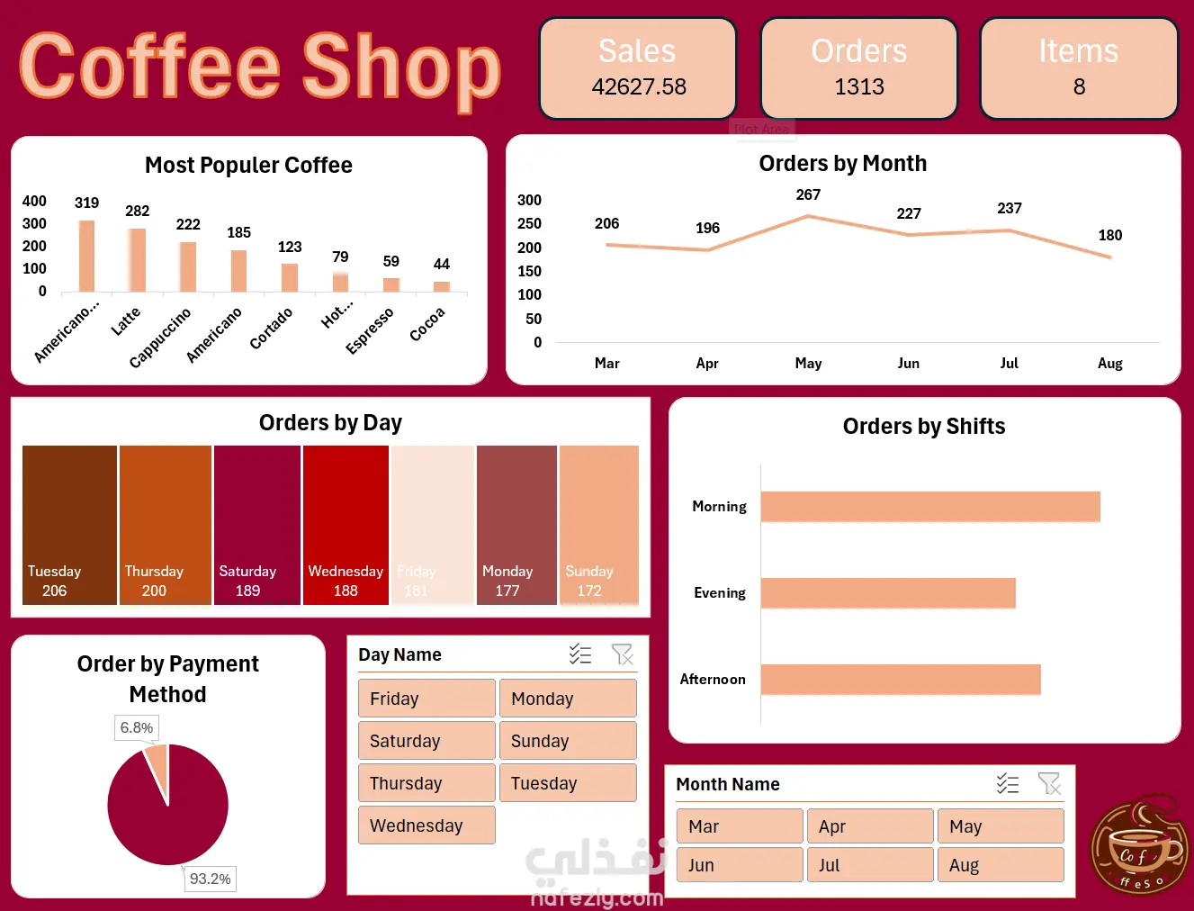لوحة تحكم تفاعلية لمتجر قهوة باستخدام اكسيل