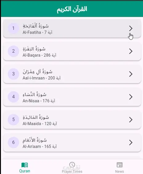 قمت بتطوير تطبيق القرآن الكريم ومواقيت الصلاة يعرض: 114 سورة كاملة مع عرض مواقيت الصلوات الخمس. واجهة استخدام متجاوبة تدعم اللغة العربية (RTL) لسهولة القراءة والتنقل. التطبيق يضم 3 شاشات أساسية مع تجربة سلسة لـ +10 مستخدمين أثناء الاختبار. تحسين الأداء باستخدام Provider لإدارة الحالة وتقليل إعادة البناء غير الضرورية مما زاد من سرعة الاستجابة وسلاسة التدفق. الادوات المستخدمة: Flutter – Dart – REST API – JSON – Android Studio