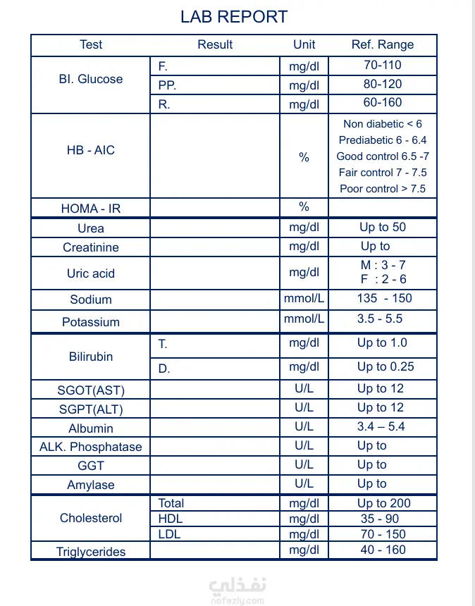 Lab report لمعمل تحاليل