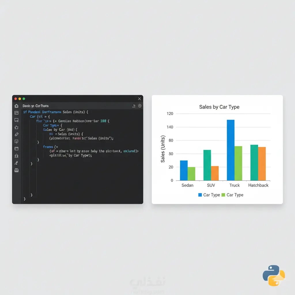 استخدمت مكتبات Pandas و Matplotlib و Seaborn لاكتشاف الأنماط والعلاقات بين المتغيرات مثل: مقارنة بين أنواع السيارات الأكثر مبيعًا. تحليل العلاقة بين السعر وعدد المبيعات. استخراج المؤشرات الرئيسية للأداء (KPIs) مثل إجمالي الأرباح ومتوسط المبيعات الشهرية. تم تقديم النتائج في شكل تقارير ورسوم بيانية توضيحية تساعد الإدارة في اتخاذ قرارات مبنية على البيانات. ⚙️ الأدوات المستخدمة Python Pandas Matplotlib Seaborn Jupyter Notebook