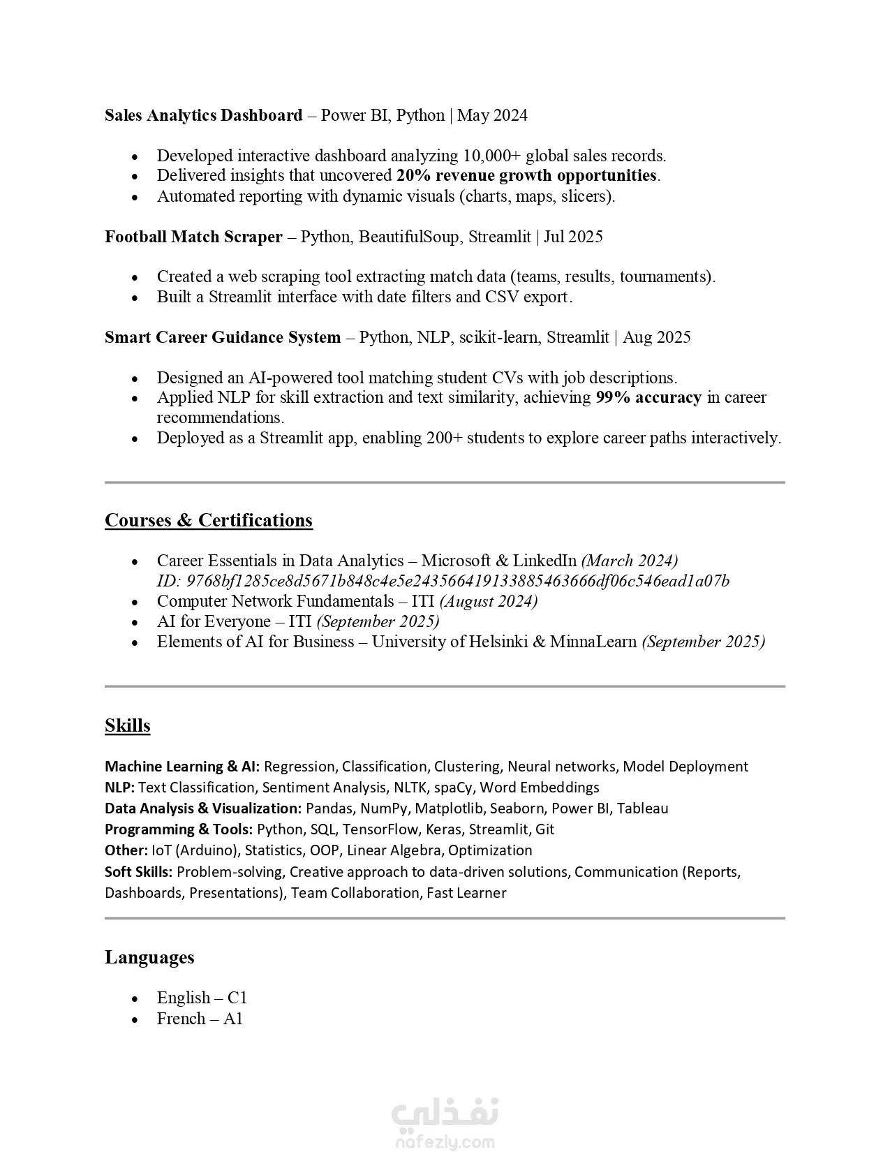 أقدّم خدمة كتابة سيرة ذاتية احترافية متوافقة مع أنظمة التوظيف الآلي (ATS)بلغة واحدة (العربية أو الإنجليزية حسب اختيارك) بحد أقصى ثلاث صفحات، مصممة لتسليط الضوء على مهاراتك وخبراتك بشكل يضمن لك الحصول على درجة عالية في أنظمة الفرز الإلكتروني، مما يزيد فرصك في الوصول إلى مقابلات العمل. ستحصل على سيرة ذاتية واضحة، منظمة، تساعدك على التميز بين المتقدمين. سيحصل العميل على نسخة سيرة ذاتية احترافية متوافقة مع أنظمة ATS. ملف بصيغة Word و PDF جاهز للاستخدام والتعديل. نسخة قابلة للتخصيص حسب الوظيفة أو المجال المستهدف. بلغة واحدة (العربية أو الإنجليزية حسب اختيارك) بحد أقصى ثلاث صفحات