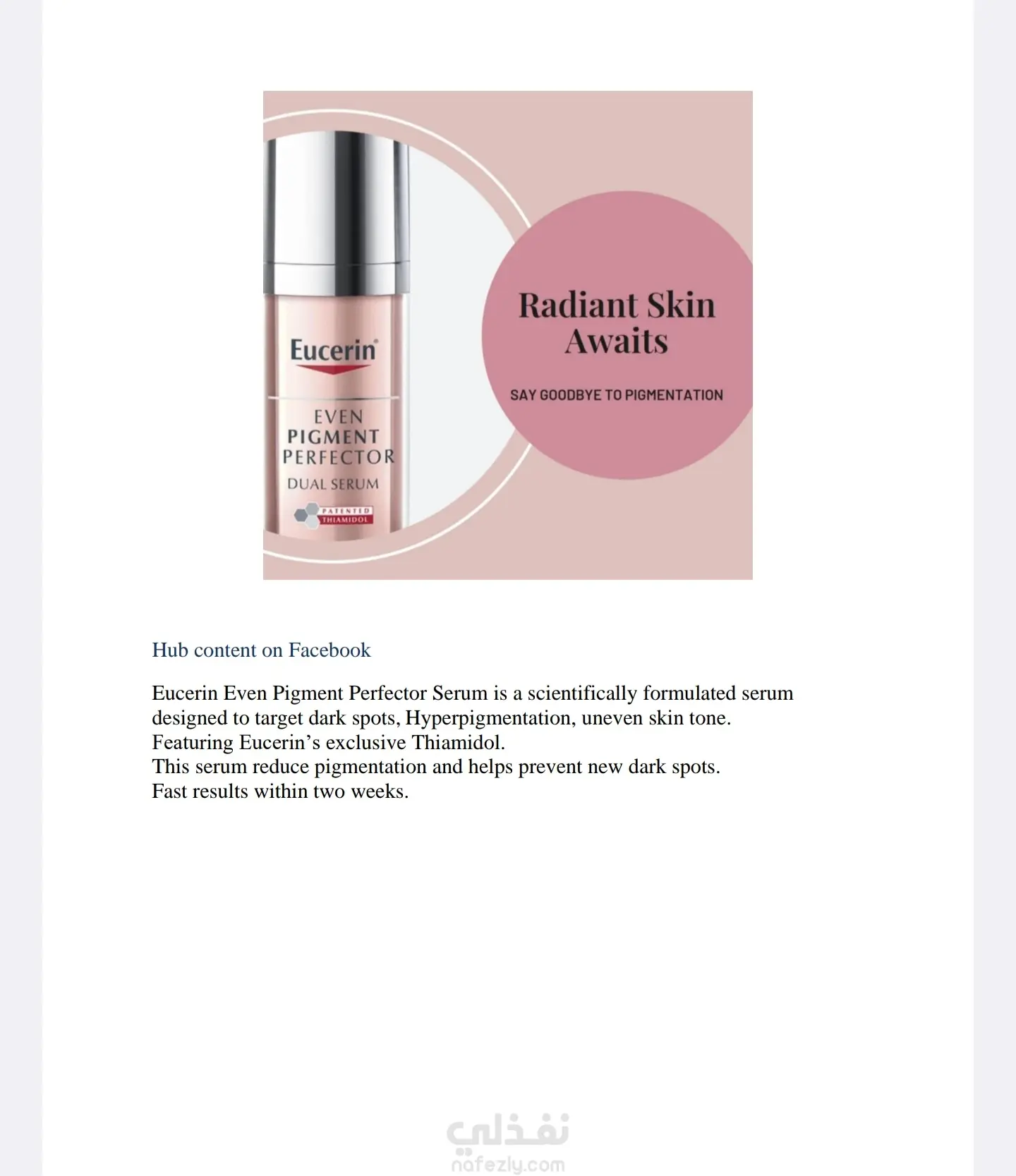 منشور ترويجي لمنتج Eucerin لتفتيح البشرة