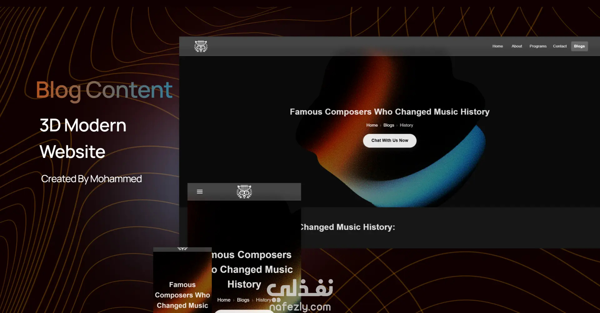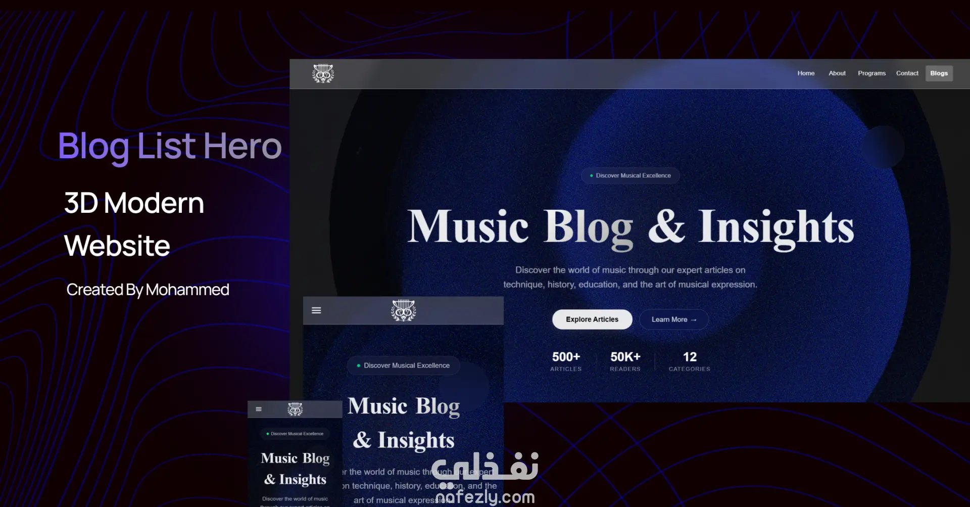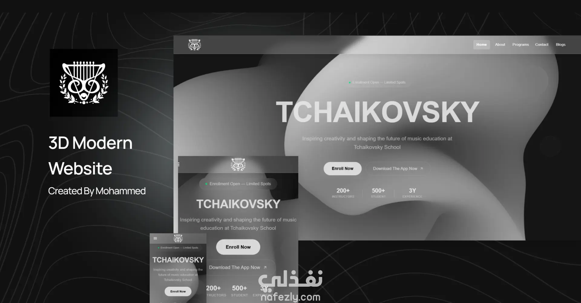 موقع Tchaikovsky School هو موقع تعريفي صُمم ليعرض هوية مدرسة تشايكوفسكي للموسيقى، ورسالتها الفنية، وخدماتها التعليمية في مجال الموسيقى بشكل عصري وجذاب. تم تطوير الموقع باستخدام Next.js لتحقيق أداء مرتفع وسرعة في التصفح، مع دمج مكتبة Three.js لإضافة عناصر ثلاثية الأبعاد تفاعلية تمنح الموقع روحًا فنية مميزة تعكس الطابع الموسيقي للمدرسة. الخصائص الرئيسية: تعريف بالمدرسة: صفحة رئيسية تسلط الضوء على رؤية المدرسة، أهدافها، ورسالتها في نشر الفن والموسيقى. ? قسم المعلمين: يعرض صور ونبذات تعريفية عن المدرسين وخبراتهم الموسيقية. خدمات المدرسة: توضيح أنواع الدروس والخدمات الموسيقية المقدمة داخل المدرسة. تجربة بصرية مميزة: استخدام Three.js لإنشاء مؤثرات تفاعلية ثلاثية الأبعاد مثل حركة النوتات الموسيقية أو الآلات في الخلفية. تصميم متجاوب: الموقع متوافق مع جميع الأجهزة، مما يضمن تجربة سلسة على الحاسوب أو الهاتف. أداء وسرعة: بفضل Next.js وميزة الـ Server-Side Rendering، يتم تحميل الصفحات بسرعة مع أداء عالي وتحسين لمحركات البحث (SEO). التقنيات المستخدمة: الواجهة الأمامية: Next.js العناصر التفاعلية: Three.js تصميم الستايل: Tailwind CSS