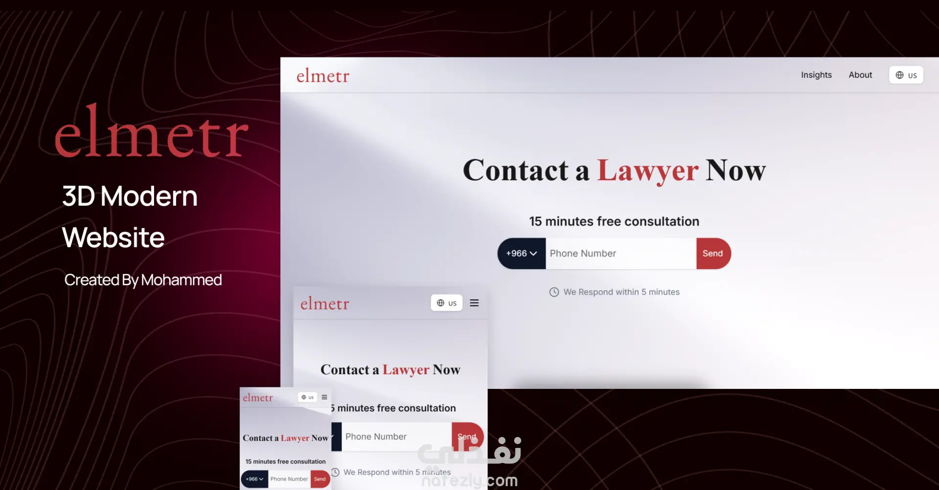 موقع المتر للمحاماة هو منصة حديثة ومتطورة صُممت لعرض خدمات المكتب القانونية وفريق العمل بشكل احترافي ومميز. تم تطوير الموقع باستخدام Next.js لضمان أداء عالي وسرعة في التصفح وتحسين لمحركات البحث، مع دمج Three.js لإضافة عناصر ثلاثية الأبعاد تفاعلية تمنح المستخدم تجربة فريدة تجمع بين الثقة والتقنية الحديثة.