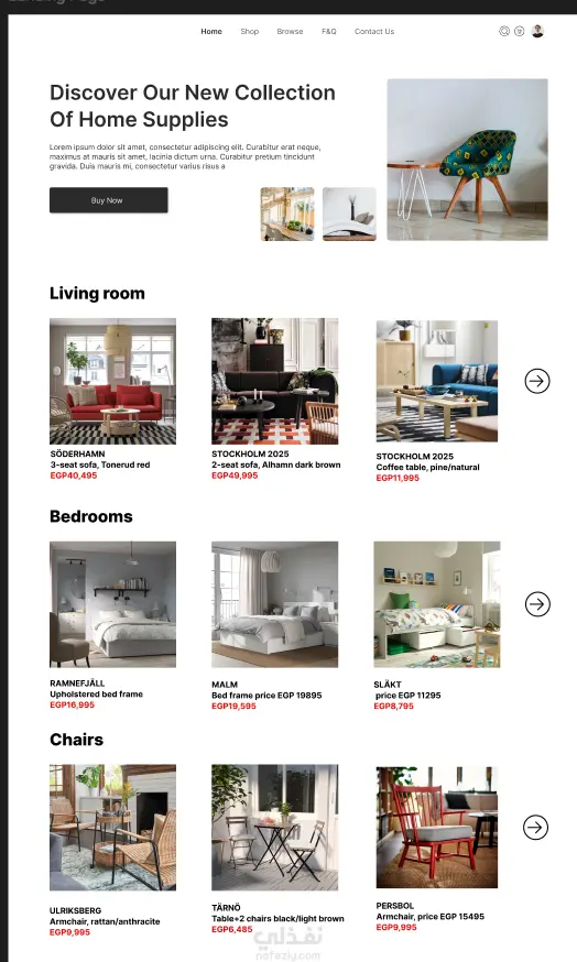 موقع Furniture Website هو منصة إلكترونية متخصصة في عرض وبيع قطع الأثاث الحديثة والكلاسيكية، مع التركيز على تصميم واجهة جذابة وتجربة مستخدم سهلة تتيح للزائر استكشاف المنتجات بكل سلاسة.