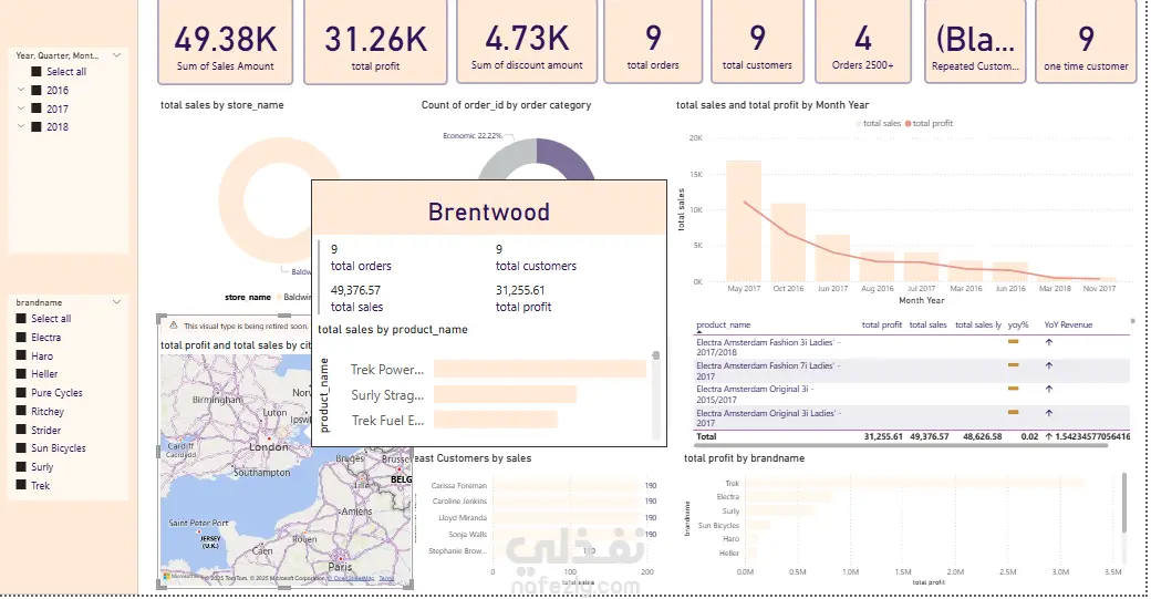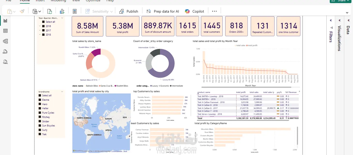 Power BI dashboard لوحة معلومات تفاعلية شاملة لمتجر دراجات (Power BI + SQL)