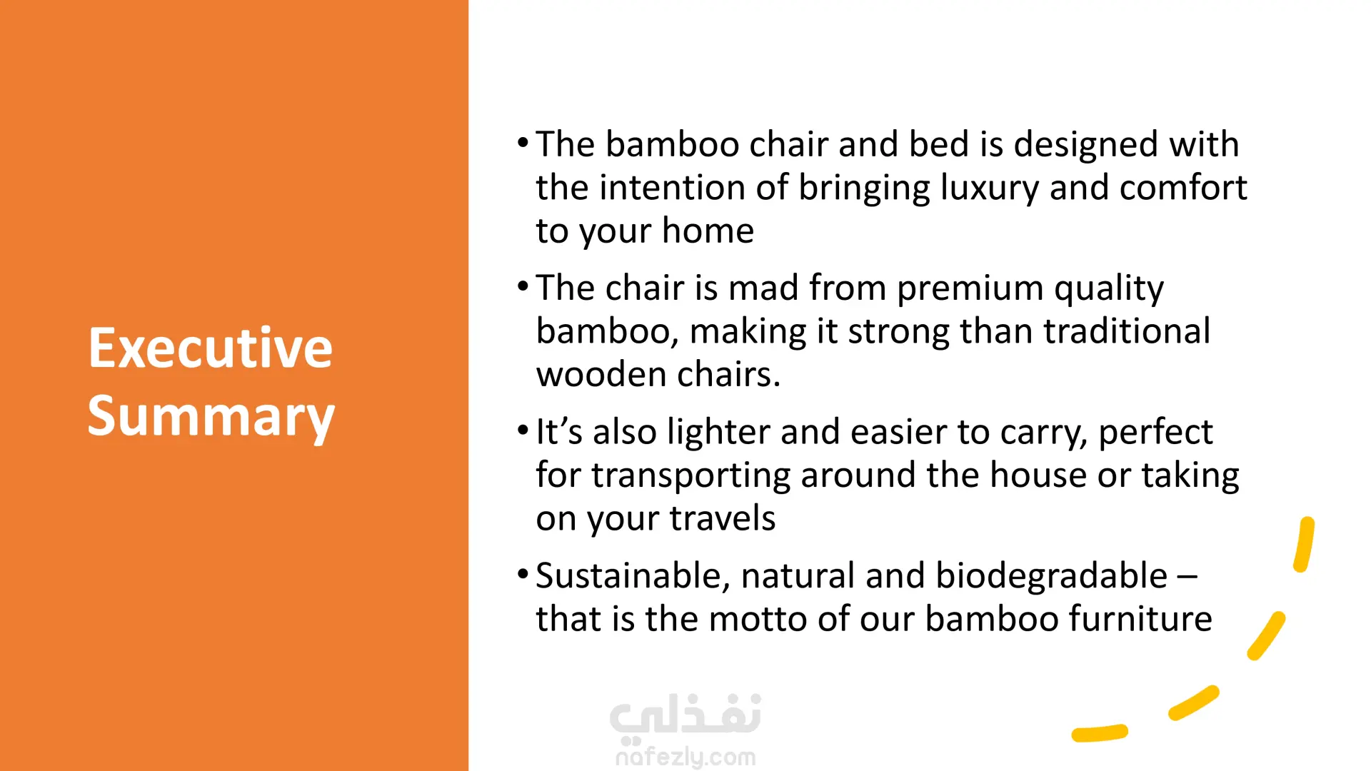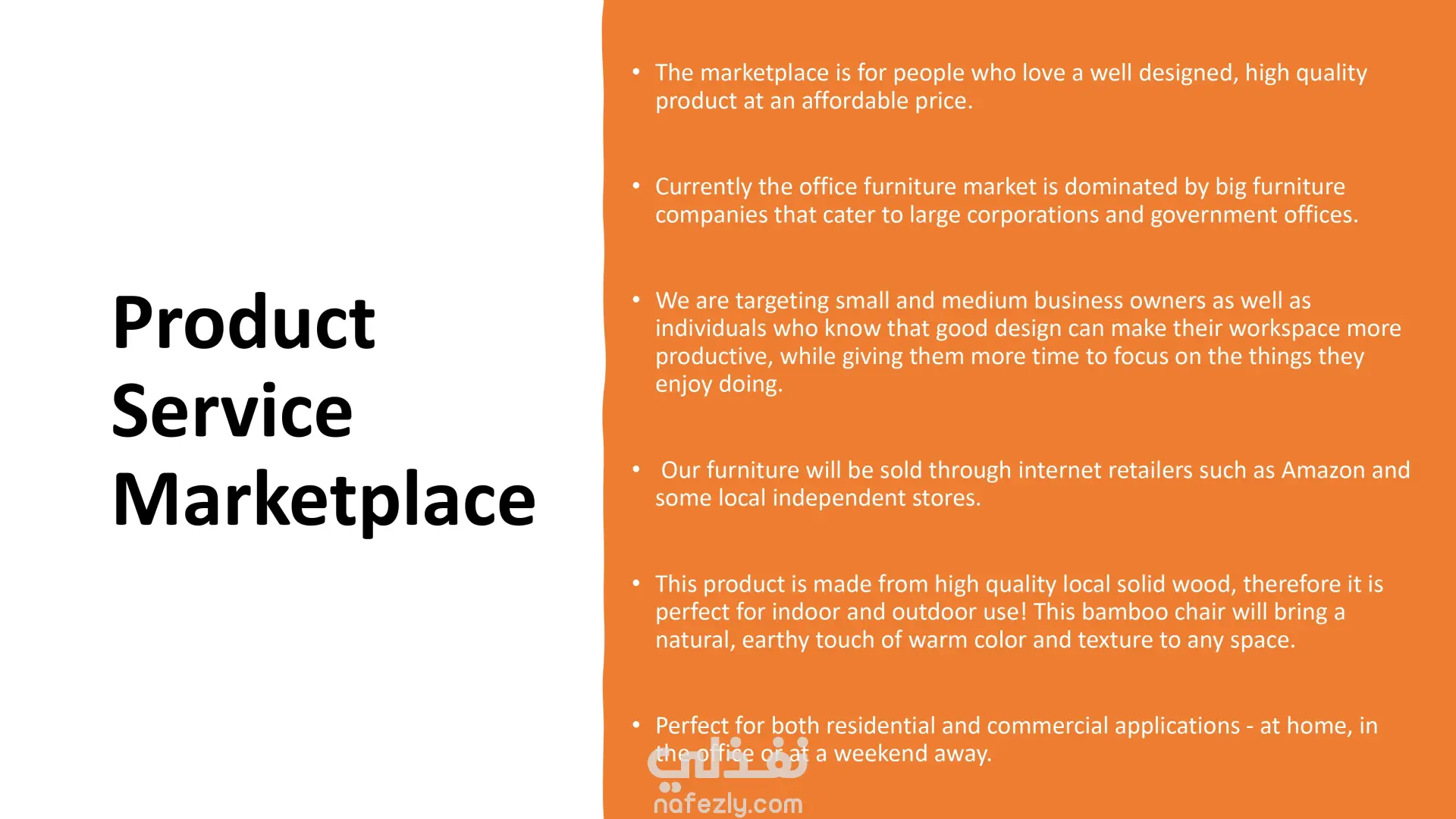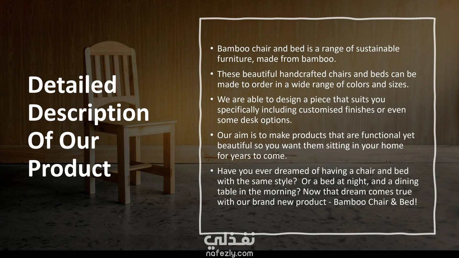 تصميم بسيط جداً لعرض presentaion عن عمل مشاريع بإستخدام نبات Bomboo في جنوب شرق اسيا ، في هذا المشروع نتكلم بالتفاصيل عن نبات الخيزران و كيفية استخدامه في صنع الاشياء مثل الكراسي و السرائر و انه اخف وزن و قلقل التكلفة ، وكيفية اقناع العملاء لأستعمال هذا النبات في تصميم الاثاث المنزلي