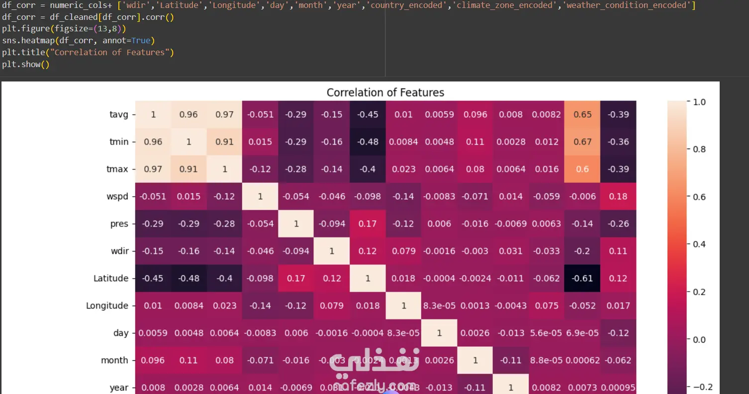 استخراج الأنماط والعلاقات بين درجة الحرارة والرطوبة وسرعة الرياح.