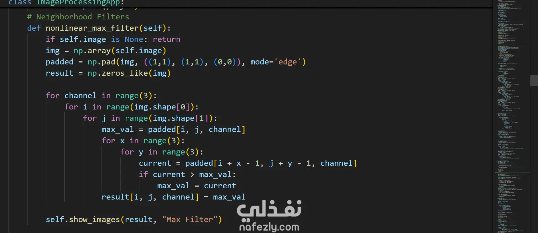 -تحليل النتائج: مقارنة بين الصور الأصلية والمعدلة لتقييم كفاءة الفلاتر في تقليل الضوضاء مع الحفاظ على الحواف والتفاصيل الدقيقة.