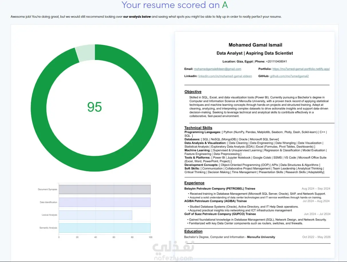 السيرة الذاتية الخاصة بي حققت 100% ATS Score على مواقع التحقق العالمية.