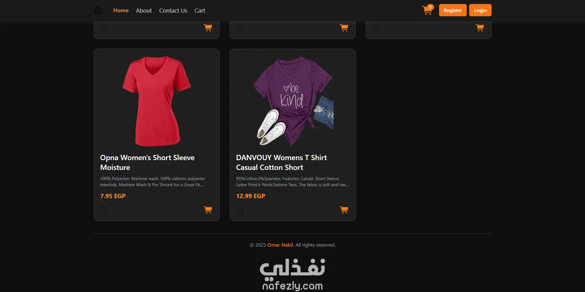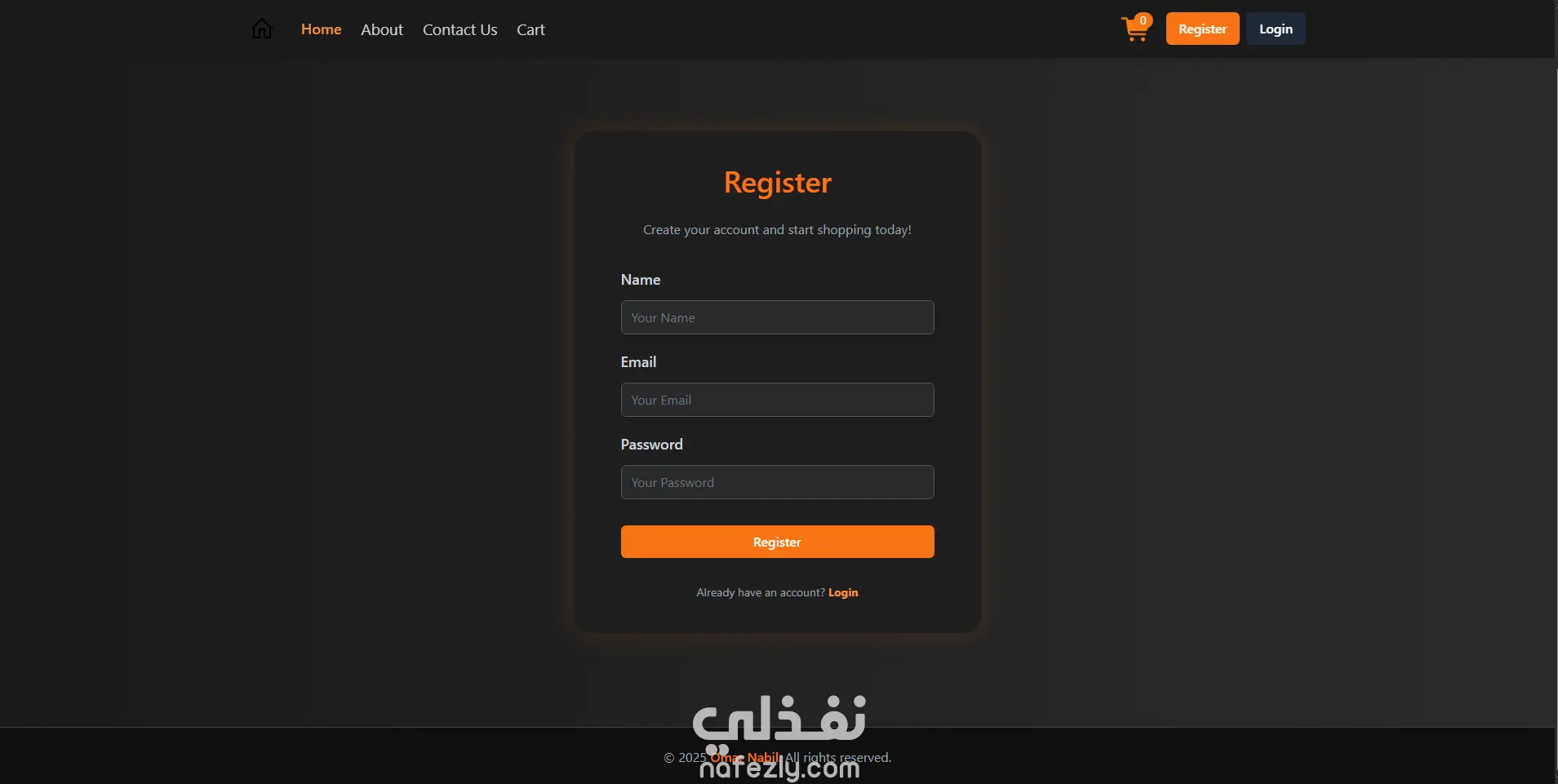 تطوير واجهة أمامية كاملة لمنصة تجارة إلكترونية عصرية (Responsive E-commerce UI) يسرني عرض مشروع منصة التجارة الإلكترونية (E-commerce Platform)، وهي واجهة أمامية متكاملة (Frontend) تهدف إلى توفير تجربة تسوق إلكتروني حديثة وفعالة. تم تطوير هذه المنصة بالتركيز على الجمالية البصرية، التنفيذ التقني المتقدم، والتصميم المتجاوب الكامل. التقنيات الأساسية والمتقدمة المستخدمة: HTML5: لبناء الهيكل الدلالي والمنطقي للمنصة. CSS3 & Tailwind CSS: تم استخدام Tailwind CSS لضمان سرعة التطوير والتناسق، مع الاستفادة من خصائص CSS3 المتقدمة لتطبيق التأثيرات البصرية. JavaScript: لإضافة التفاعل، وظائف التنقل الديناميكية، وإدارة حالة السلة (Cart) في الواجهة الأمامية. Flexbox & CSS Grid: تم الاعتماد على نظامي Flexbox و Grid لتحقيق التخطيطات المعقدة لصفحة المنتجات (Product Grid) وضمان التوزيع المثالي للعناصر على جميع الشاشات. تأثيرات CSS (مثل hover): تم تطبيق تأثيرات hover سلسة على بطاقات المنتجات والأزرار لتحسين تفاعل المستخدم (UX) وجعل الواجهة أكثر حيوية. المميزات الرئيسية والتنفيذ الدقيق: تصميم متجاوب بالكامل (Pixel-Perfect Responsive Design): تم بناء المنصة لتتكيف بسلاسة مع جميع الأجهزة (سطح المكتب، والمنصات المحمولة)، مع الاهتمام الخاص بتنظيم بطاقات المنتجات والقوائم المنسدلة (في وضع الموبايل) لتقديم أفضل تجربة تصفح. واجهة مستخدم عصرية وجذابة (Modern UI/UX): نظام ألوان داكن (Dark Mode): تصميم الواجهة يعتمد على خلفية داكنة (Dark Gray) مع استخدام اللون البرتقالي الدافئ كلون مميز (Accent Color) للعناوين، الأزرار، وعناصر التفاعل، مما يمنح المنصة مظهرًا فاخرًا وحديثًا. بطاقات المنتجات المتقدمة (Product Cards): تصميم بطاقات منتجات أنيقة وواضحة، تعرض صورة المنتج، الاسم، الوصف المختصر، السعر، وأزرار "الإضافة للسلة" و**"المفضلة"** بوضوح. وظائف إدارة المستخدمين (Authentication Interface): تطوير واجهتين منفصلتين لتسجيل الدخول (Login) و التسجيل الجديد (Register)، مصممتين بشكل مركزي وأنيق، مع ضمان تجاوبهما الكامل على الشاشات الصغيرة. تخطيطات متقدمة (Advanced Layouts): استخدام CSS Grid بفعالية لتنظيم عرض المنتجات في شبكة متعددة الأعمدة على شاشات سطح المكتب، واستخدام Flexbox لضبط محاذاة العناصر داخل البطاقات والتنقل. شريط تنقل علوي ثابت (Sticky Navigation) يحتوي على روابط أساسية وأيقونة سلة الشراء (Cart) وأزرار الدخول/التسجيل. يبرهن هذا المشروع على قدرتي على تطوير واجهات تجارة إلكترونية معقدة وظيفيًا وجمالية، باستخدام أحدث تقنيات الـ Frontend لتقديم تجربة مستخدم استثنائية.
