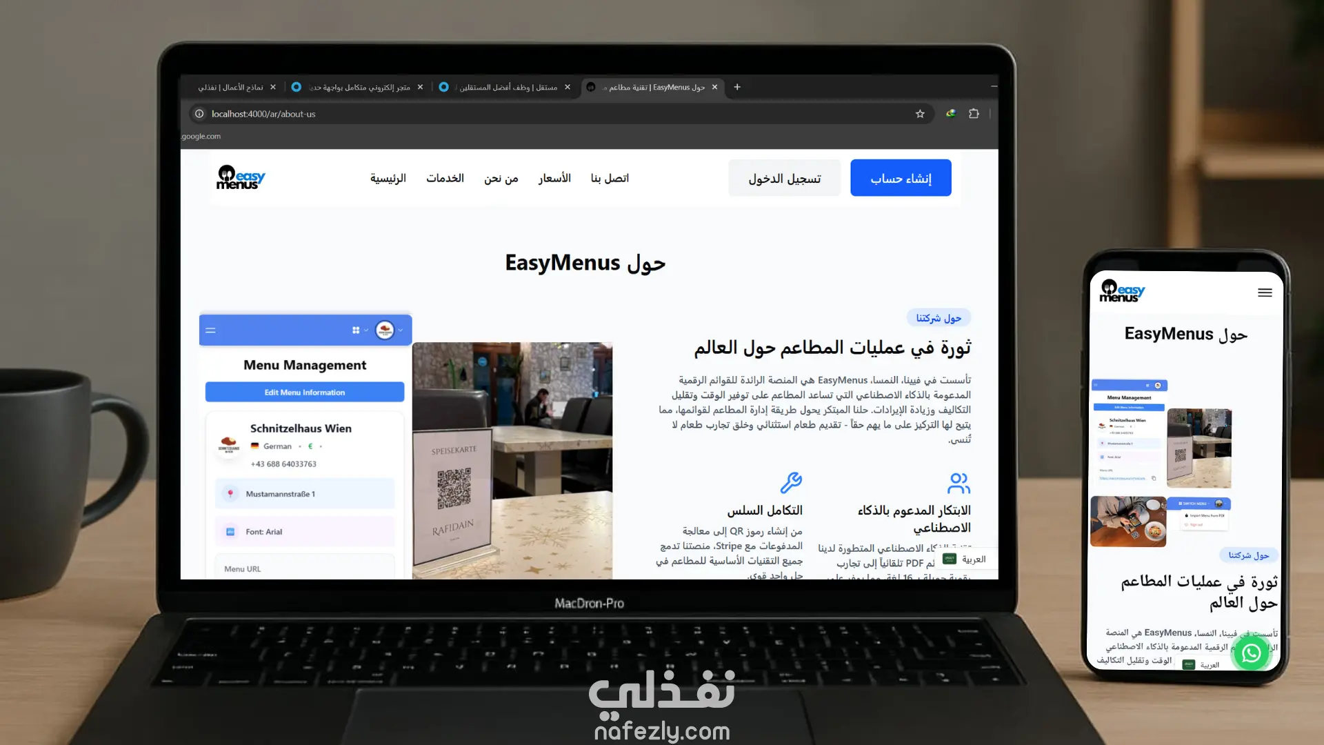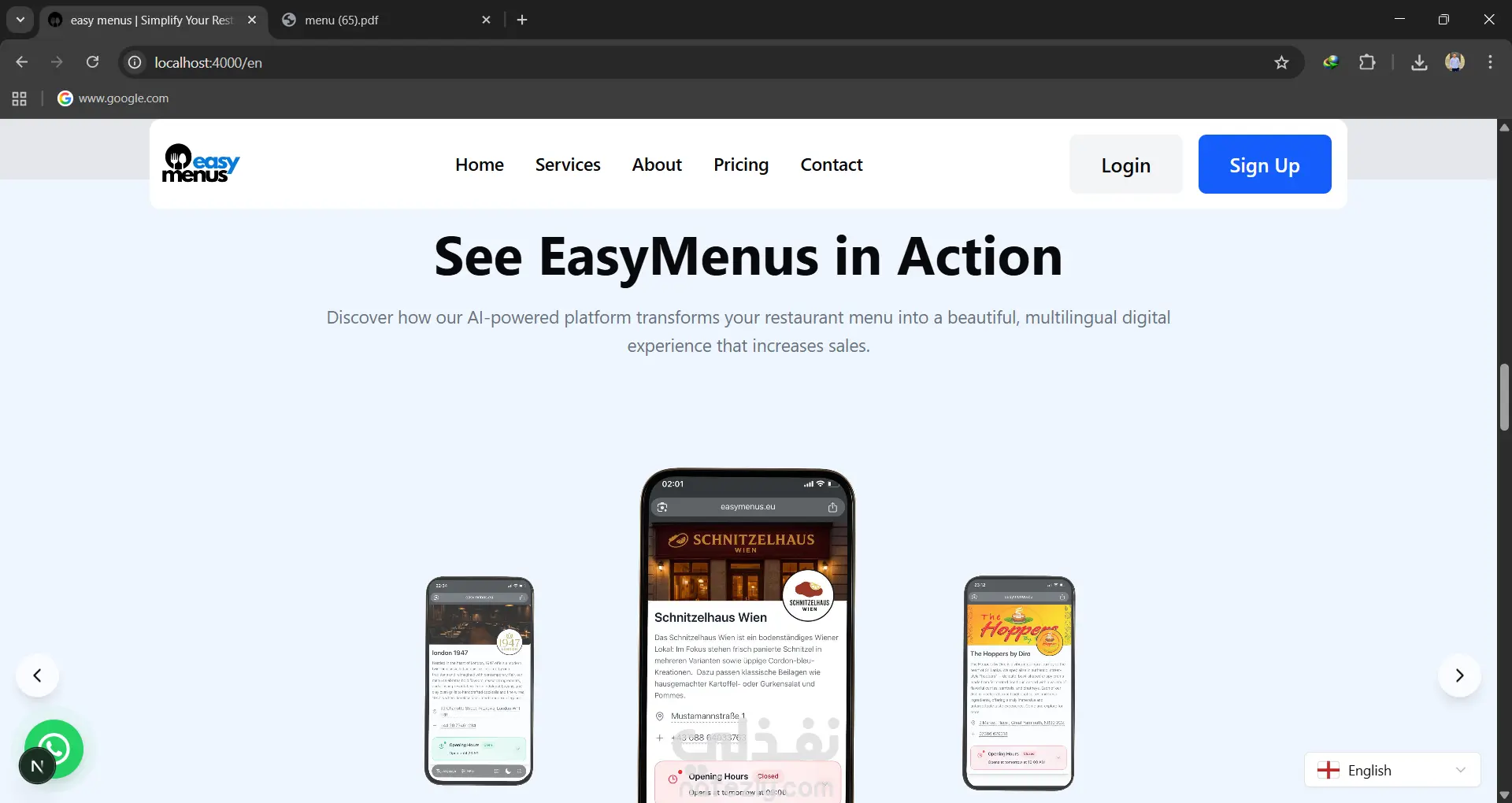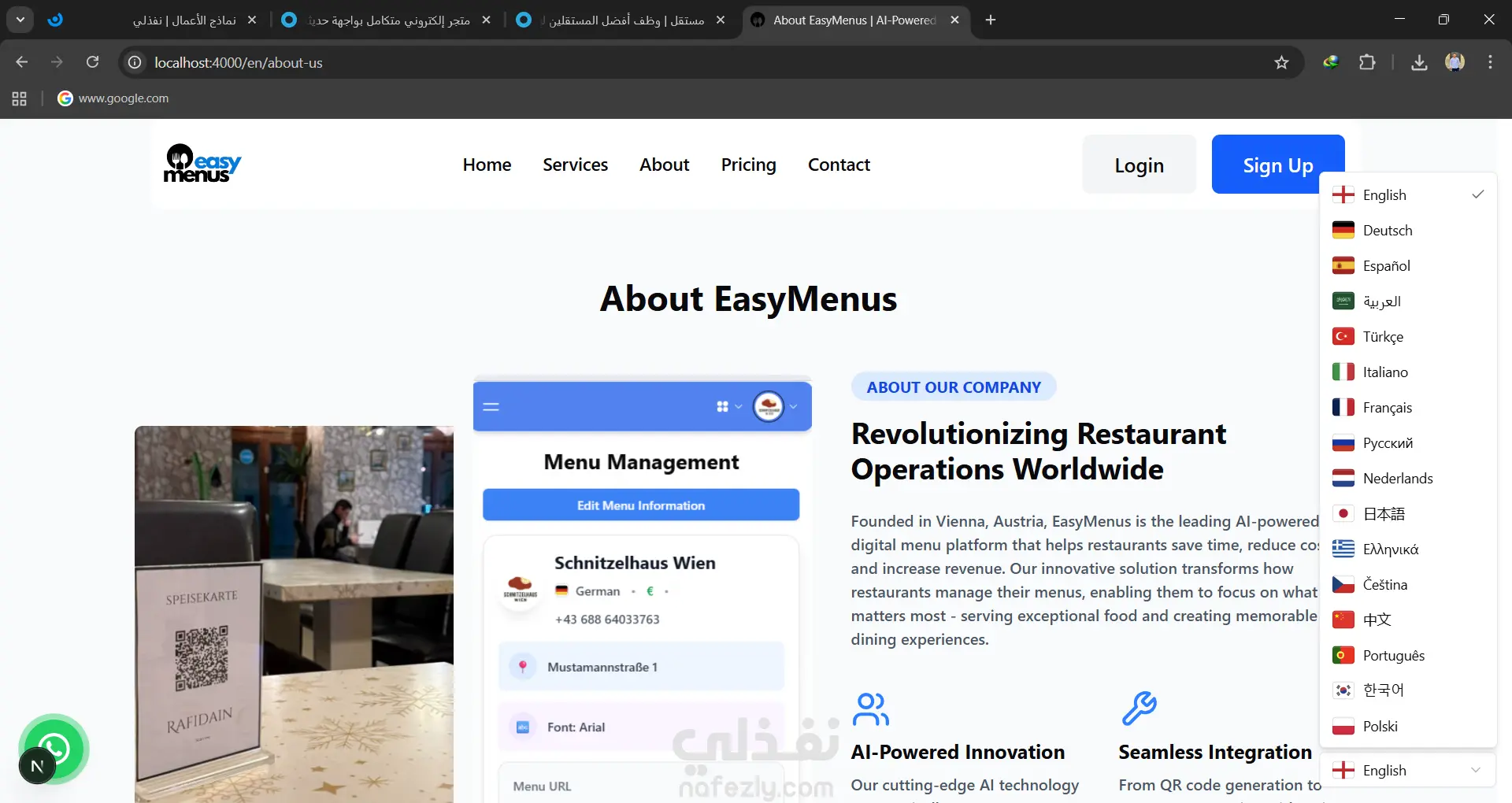 تطوير موقع أوروبي متعدد اللغات يستخدم الذكاء الاصطناعي لإنشاء المنيوهات للمطاعم