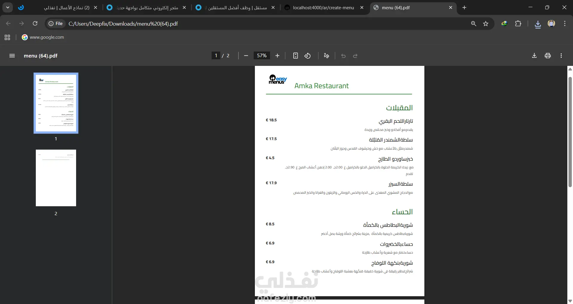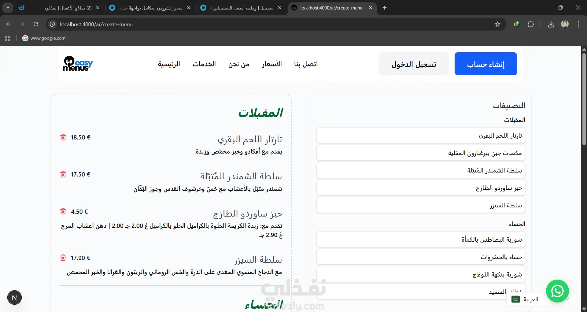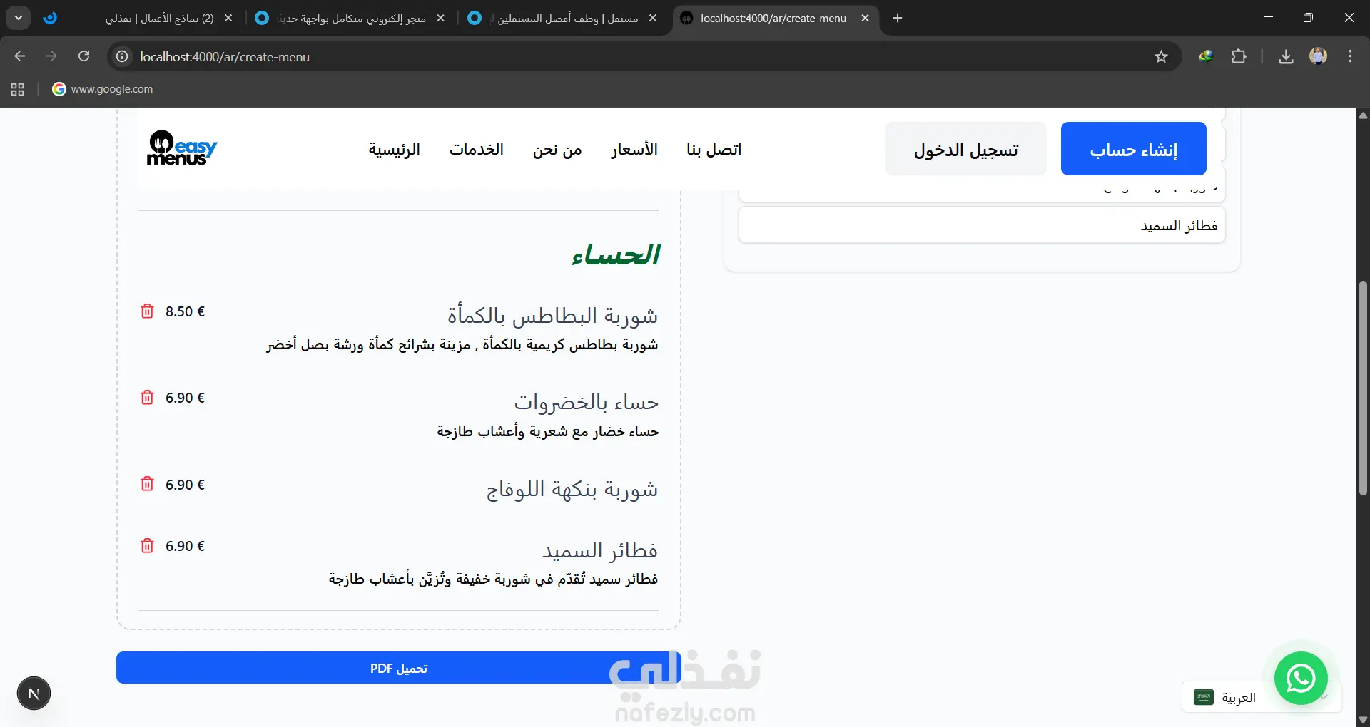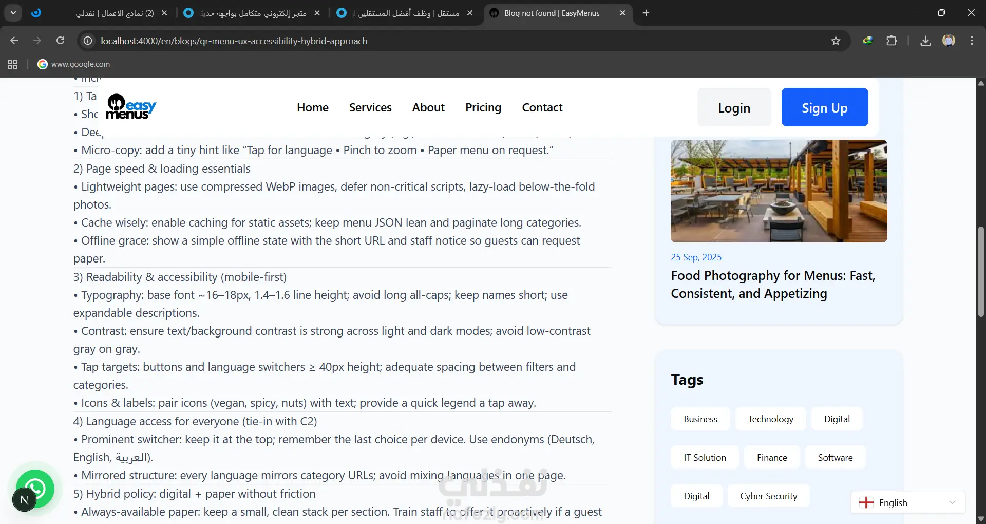 تطوير موقع أوروبي متعدد اللغات يستخدم الذكاء الاصطناعي لإنشاء المنيوهات للمطاعم