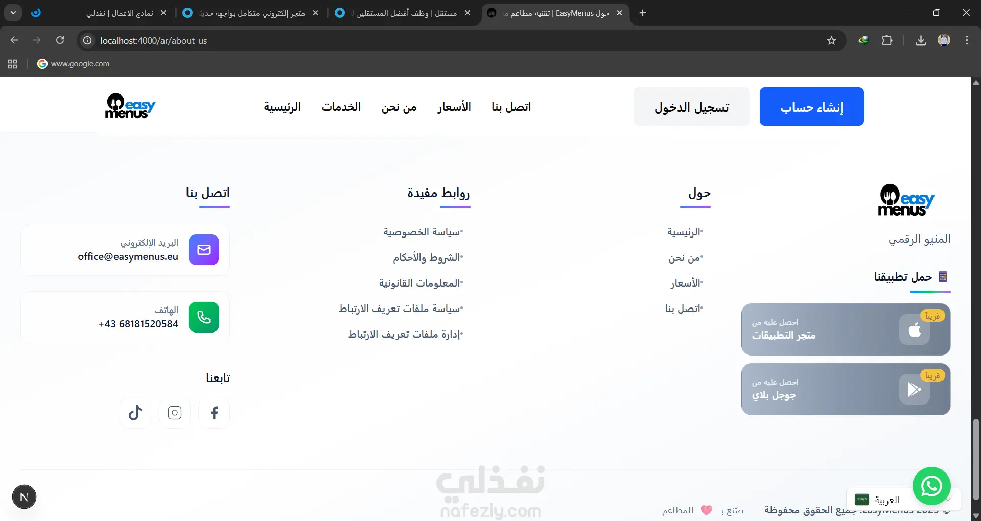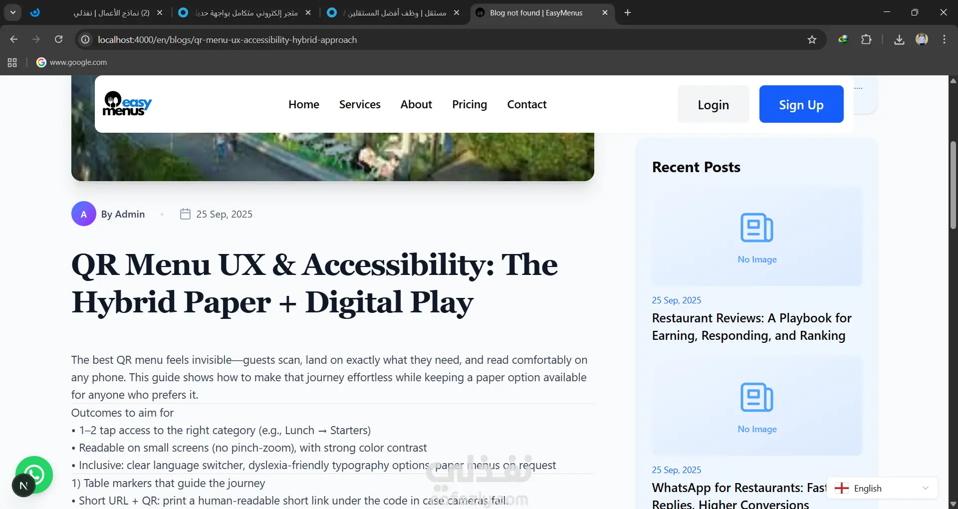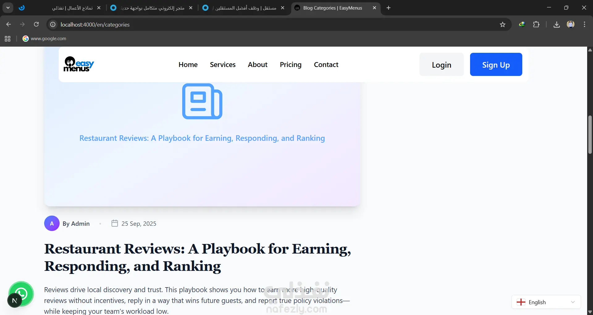 تم العمل على تطوير موقع أوروبي مبتكر يعتمد على الذكاء الاصطناعي في إنشاء وتصميم المنيوهات الخاصة بالمطاعم والكافيهات. كان دوري في المشروع هو تنفيذ وتطوير الواجهات الأمامية باستخدام تقنيات حديثة لتحقيق أداء عالي وتجربة مستخدم احترافية. شملت المهام التي تم تنفيذها: ✅ تطوير صفحات كاملة مثل: About – Contact – Blog – Blog Details – Create Menu ✅ تحسين تجربة المستخدم وإضافة أقسام ديناميكية مثل Testimonials وعرض المنيوهات ✅ دعم الموقع بـ 16 لغة مختلفة لضمان الوصول إلى مستخدمين حول العالم ✅ تنفيذ تحسينات خاصة بـ SEO Optimization لزيادة ظهور الموقع على محركات البحث الموقع تم تطويره بتقنيات React.js, Next.js, و Tailwind CSS لضمان السرعة، الكفاءة، والتصميم العصري المتجاوب مع جميع الأجهزة. هذا المشروع يعكس قدرتي على تنفيذ مشاريع احترافية موجهة للسوق الأوروبي، مع التركيز على الجودة، التفاصيل، وتجربة المستخدم المثالية 🌍