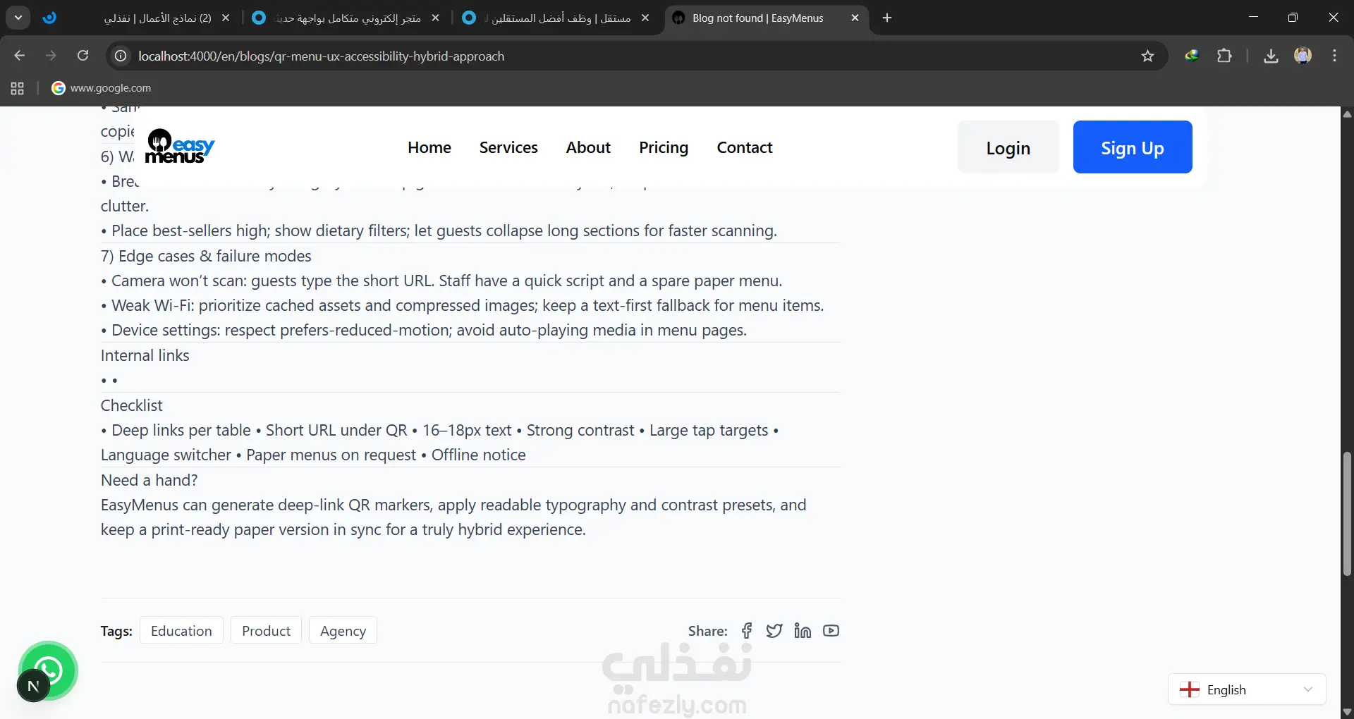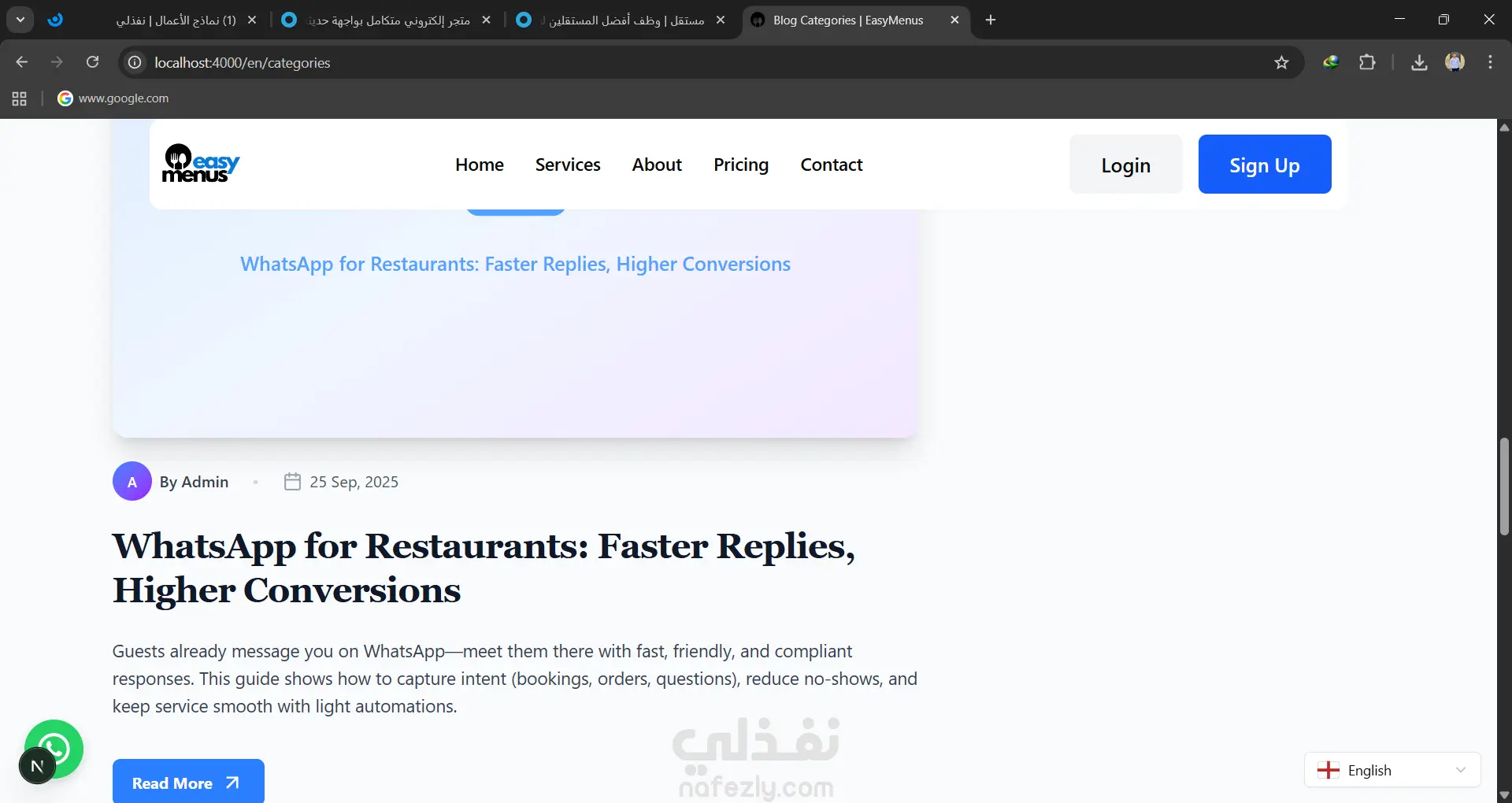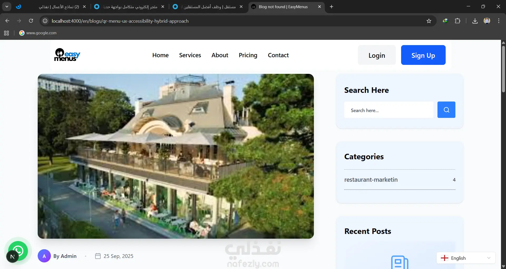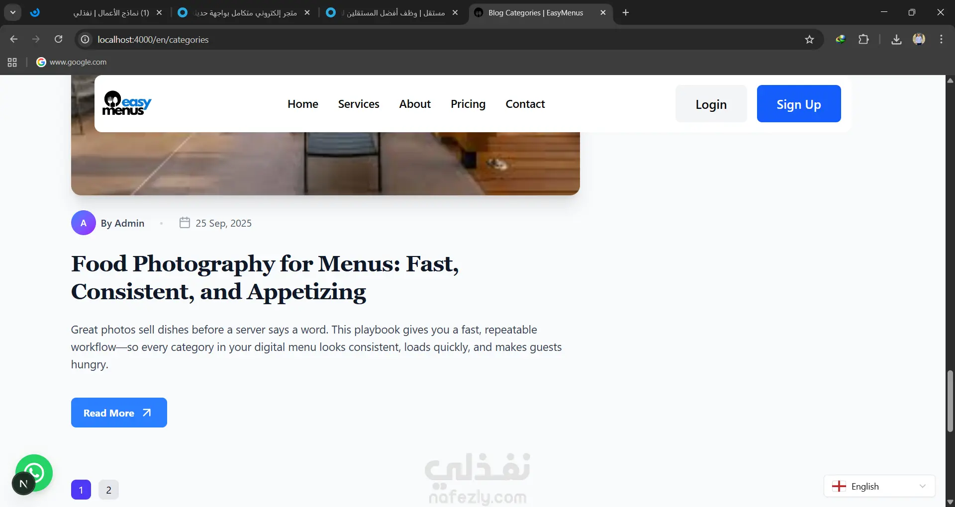 تم العمل على تطوير موقع أوروبي مبتكر يعتمد على الذكاء الاصطناعي في إنشاء وتصميم المنيوهات الخاصة بالمطاعم والكافيهات. كان دوري في المشروع هو تنفيذ وتطوير الواجهات الأمامية باستخدام تقنيات حديثة لتحقيق أداء عالي وتجربة مستخدم احترافية. شملت المهام التي تم تنفيذها: ✅ تطوير صفحات كاملة مثل: About – Contact – Blog – Blog Details – Create Menu ✅ تحسين تجربة المستخدم وإضافة أقسام ديناميكية مثل Testimonials وعرض المنيوهات ✅ دعم الموقع بـ 16 لغة مختلفة لضمان الوصول إلى مستخدمين حول العالم ✅ تنفيذ تحسينات خاصة بـ SEO Optimization لزيادة ظهور الموقع على محركات البحث الموقع تم تطويره بتقنيات React.js, Next.js, و Tailwind CSS لضمان السرعة، الكفاءة، والتصميم العصري المتجاوب مع جميع الأجهزة. هذا المشروع يعكس قدرتي على تنفيذ مشاريع احترافية موجهة للسوق الأوروبي، مع التركيز على الجودة، التفاصيل، وتجربة المستخدم المثالية 🌍