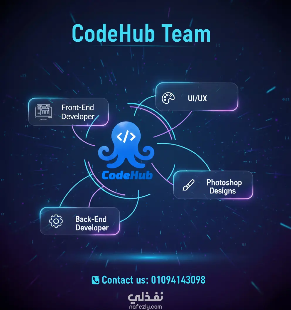 إعلان فريق CodeHub - تصميم إبداعي لخدمات التطوير والبرمجة