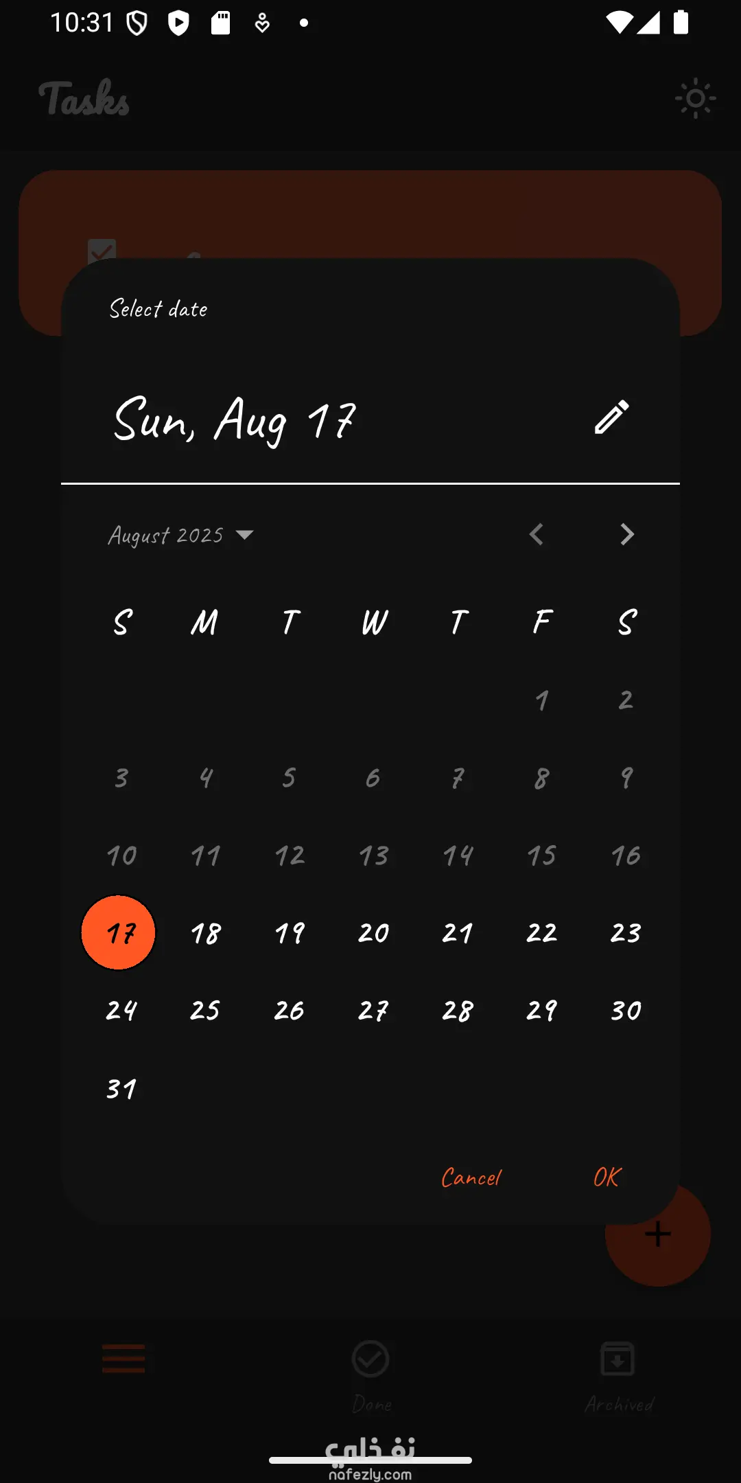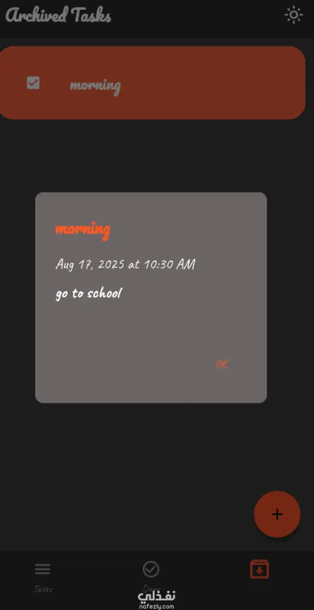 نقل المهام إلى الأرشيف بعد الانتهاء منها أو حفظها لوقت لاحق.