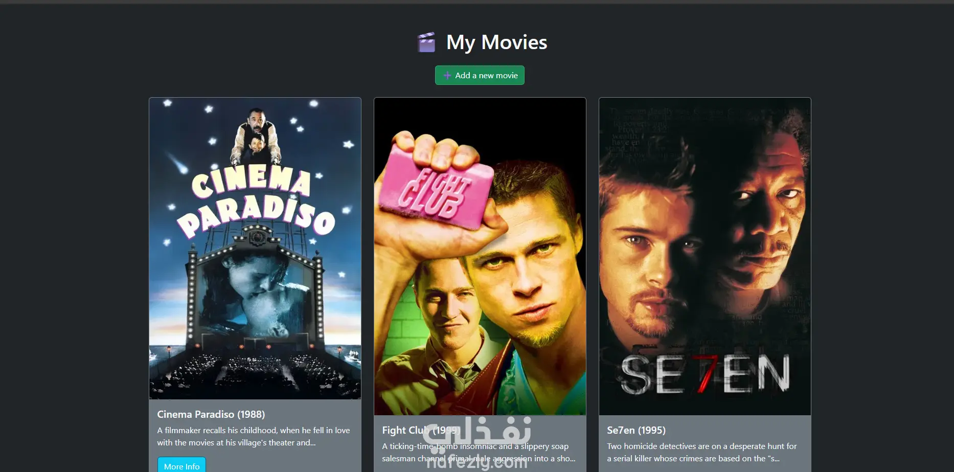 MovieTracker هو تطبيق Full-Stack يتيح للمستخدمين إضافة أفلامهم المفضلة، عرض تفاصيلها، وإدارة قائمة المفضلات الخاصة بهم.