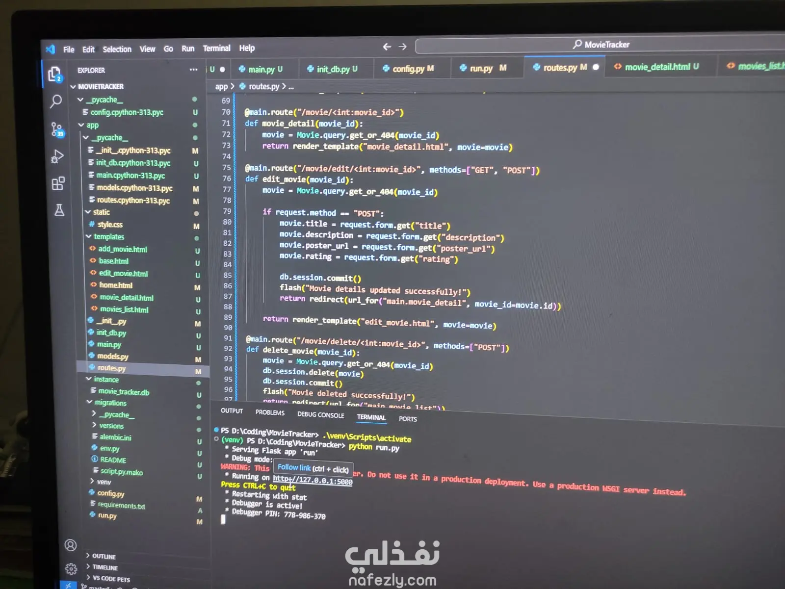 فيه تركيز كبير على الجزء الخلفي (Backend) باستخدام Flask وSQLAlchemy للتفاعل مع قاعدة البيانات، وأيضًا واجهة بسيطة للتعامل مع التطبيق.