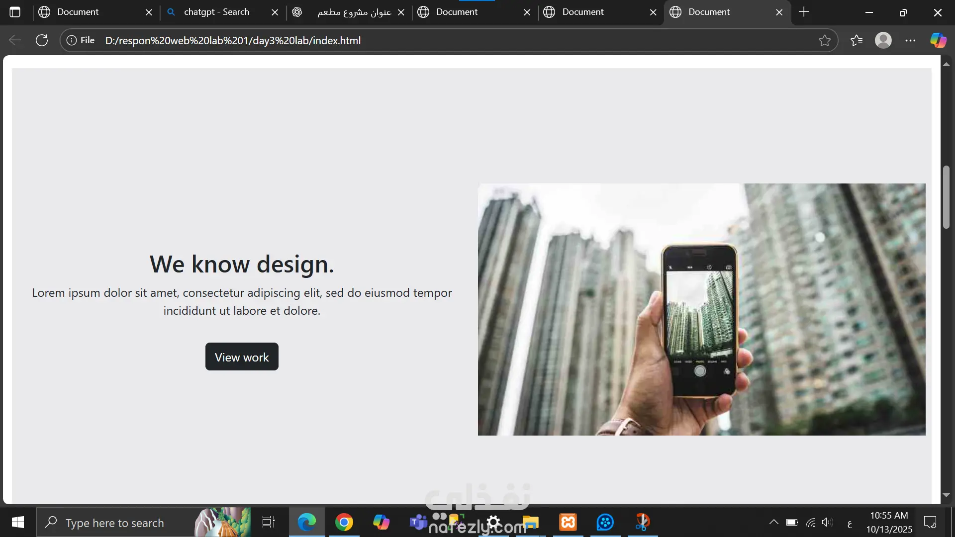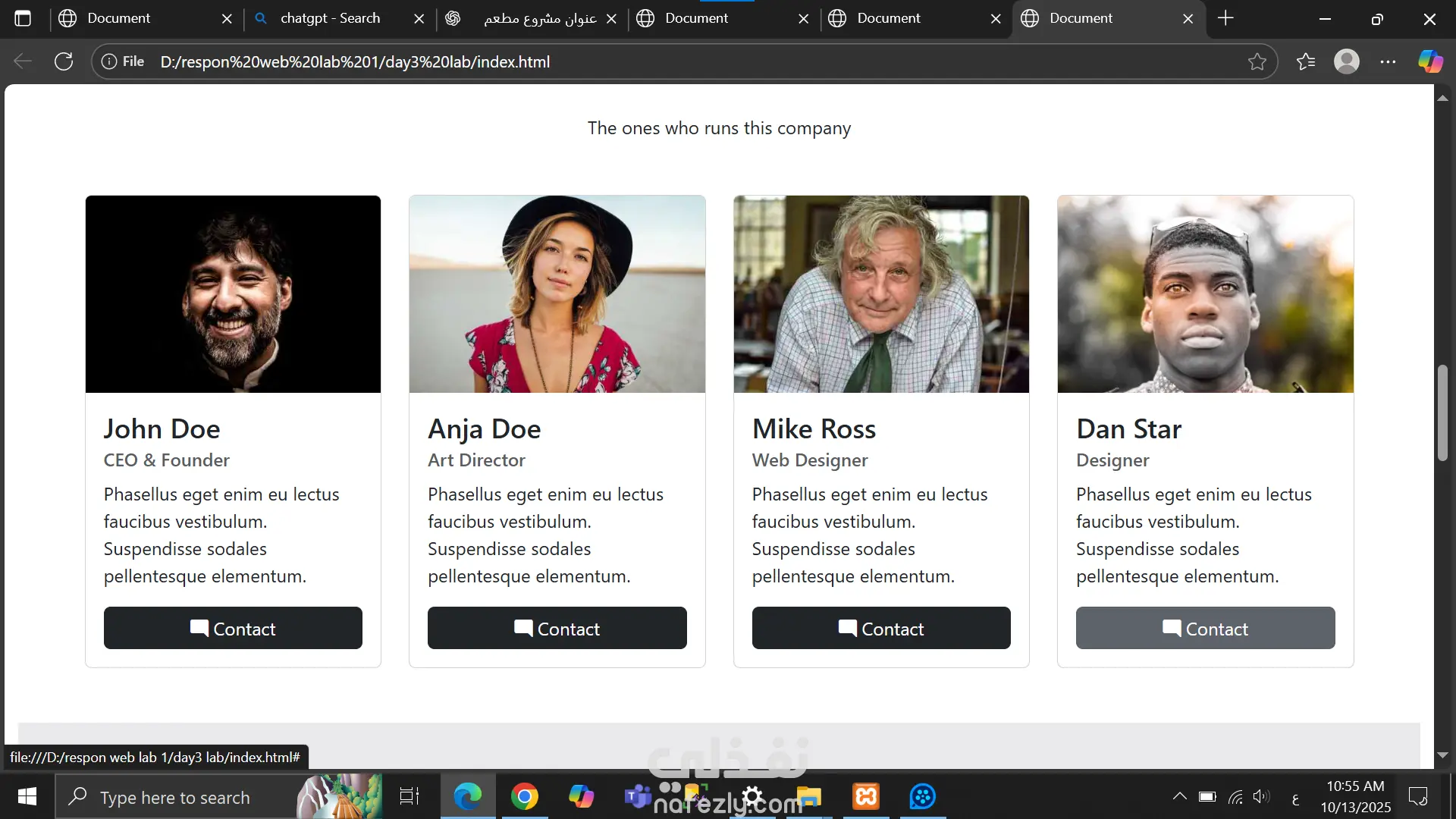 صميم موقع تعريفى للشركات بواجهة عصرية ومتجاوبة مع جميع الأجهزة. يحتوي على قسم للتعريف بالشركة وخدماتها، نموذج للتواصل، وفوتر مميز بأيقونات السوشيال ميديا. التصميم بسيط واحترافي مناسب للشركات، المؤسسات، أو الصفحات الشخصية.