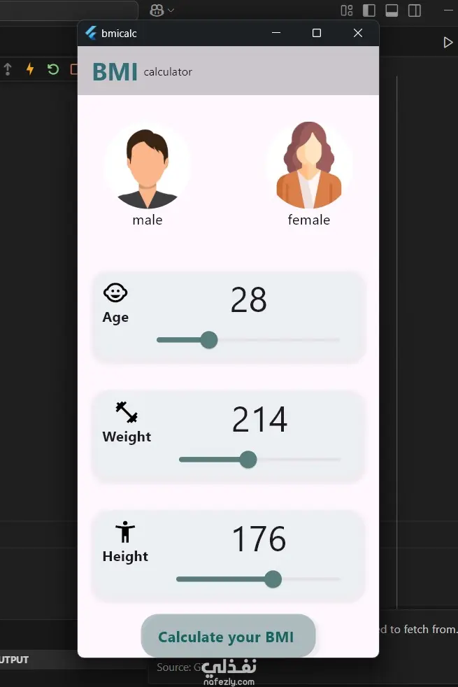 "This is a simple BMI Calculator page that I built using Flutter as a mobile application project."