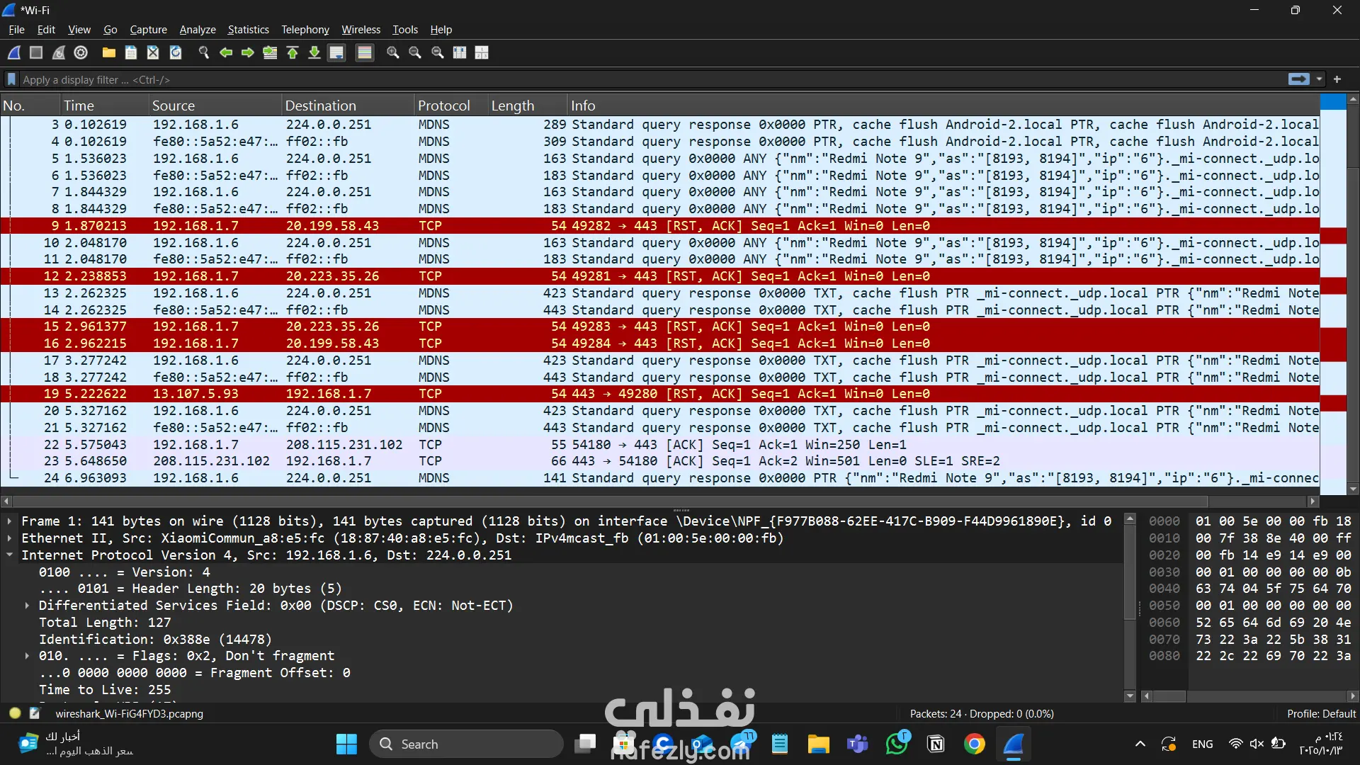 أقوم بتحليل ملفات PCAP باستخدام أداة Wireshark لتحديد الأنماط الغريبة أو المؤشرات الأمنية التي قد تدل على نشاط غير طبيعي في الشبكة.