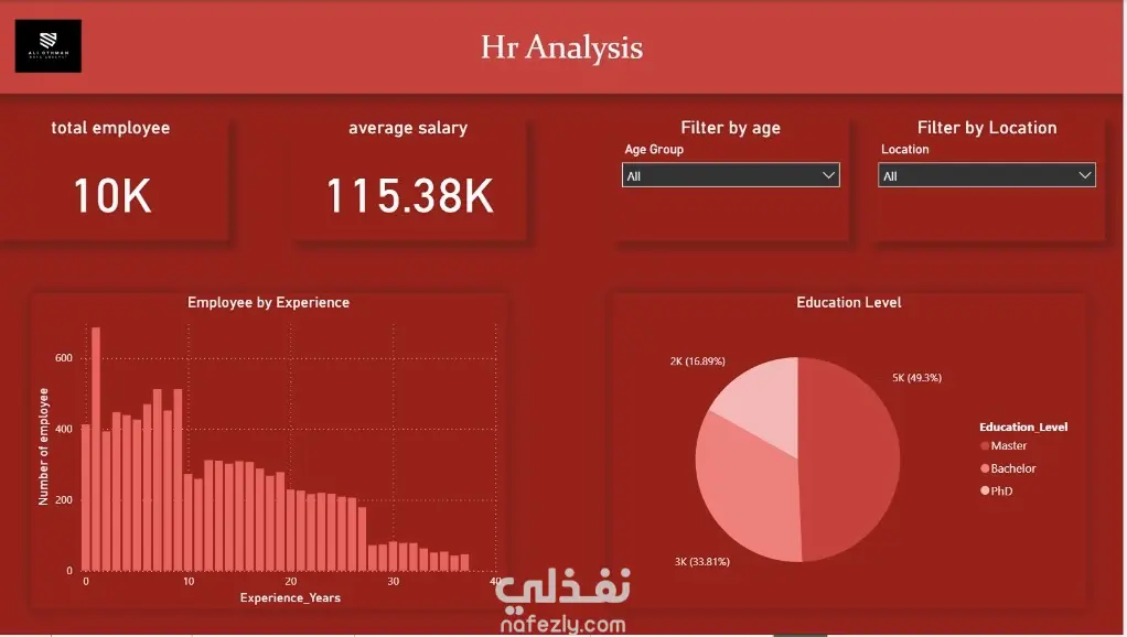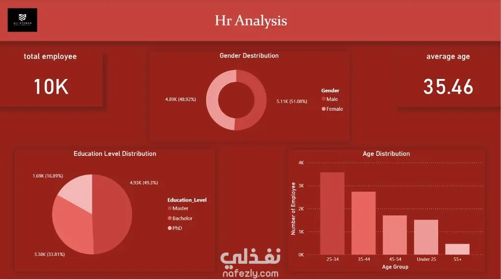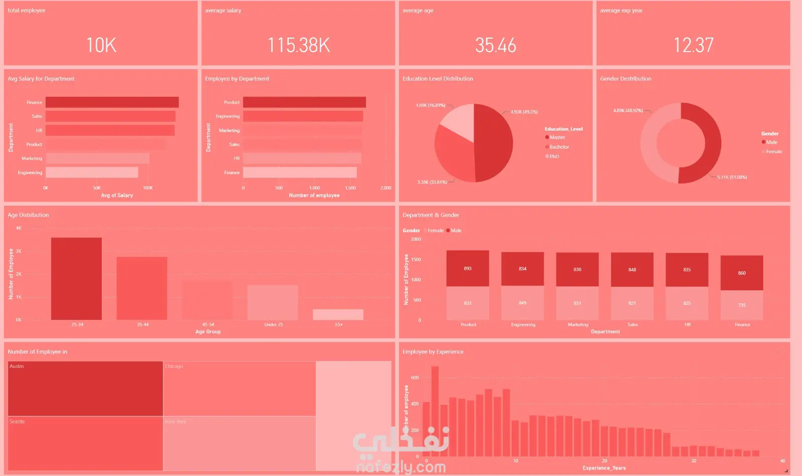 • Created KPIs for total employees, average salary, gender diversity, and education levels.