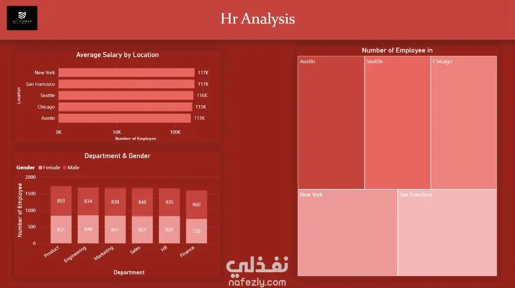 • Analyzed workforce data (department, gender, age, education, experience, salary, location).