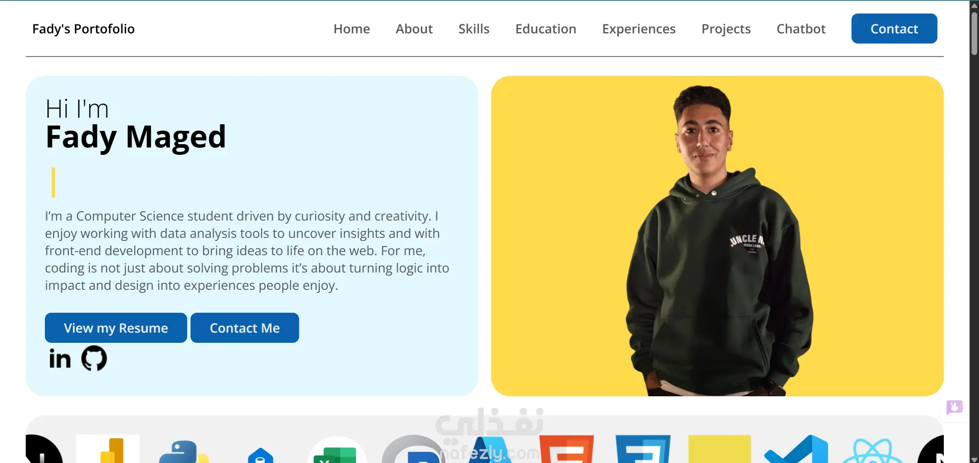 موقع بورتوفوليو احترافي مدمج به شات بوت يعمل بال AI