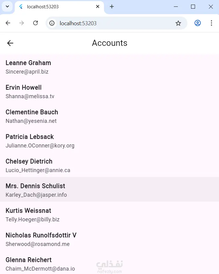 تطبيق لعرض جميع المستخدمين الذين قاموا بتسجيل الدخول باستخدام البريد الإلكتروني وكلمة المرور "اسم المستخدم" عبر استدعاء API "jsonplaceholder.typicode.com/users" وعند النقر على أي حساب مستخدم يتم عرض جميع مشاركاته وأيضًا عند النقر على أي مشاركة يتم عرض جميع تعليقات هذه المشاركة